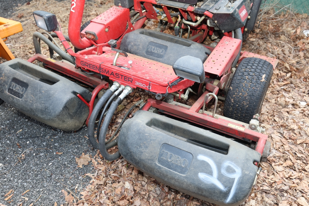 2012 Toro Greensmaster 3150 Q riding Mower. VIN: 312000803. Odometer reading: meter reads 081.6 (probably rolled over). Seller reports: Runs. Poor condition. Key available. Sold as is Fleet #: 546642.