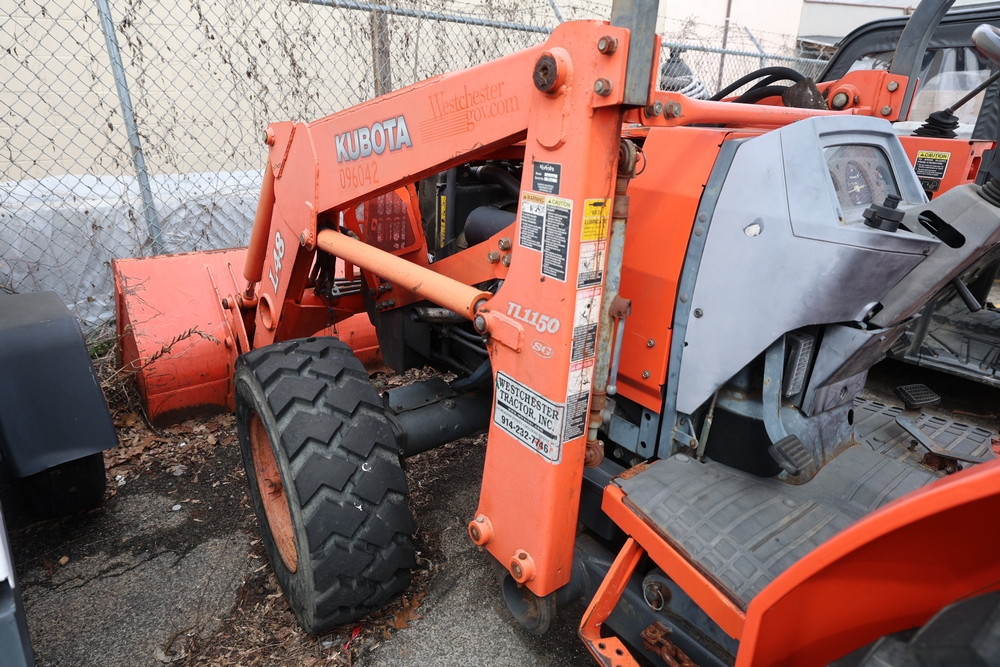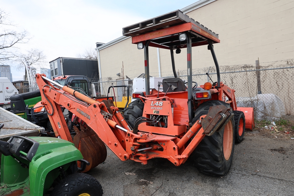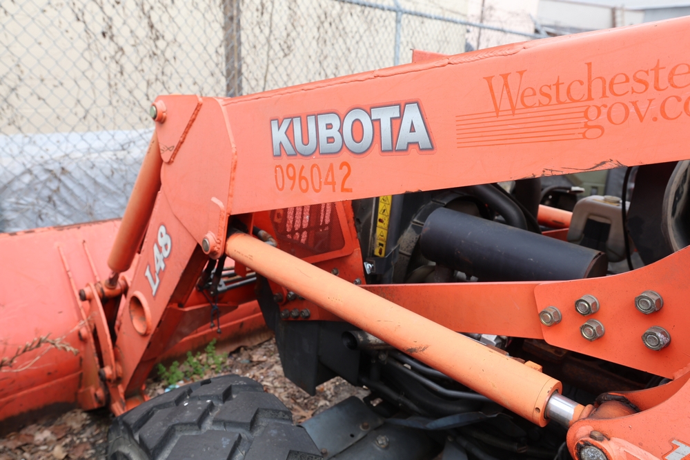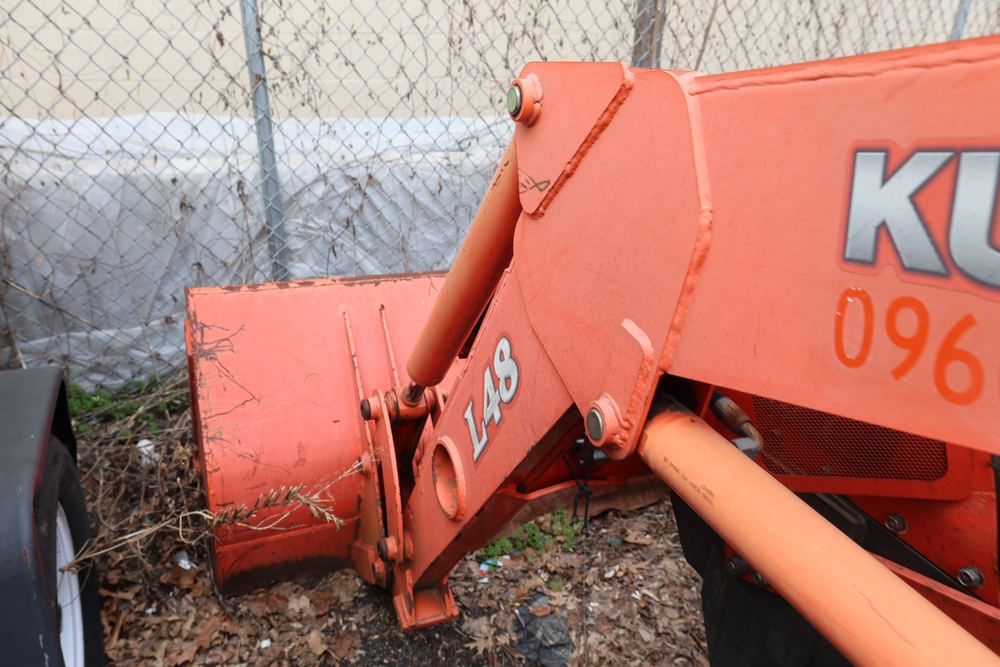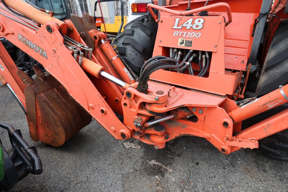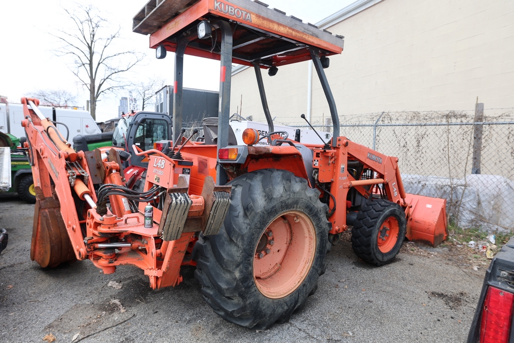 KUBOTA TRACTOR L48 W/BACKHOE LOADER. VIN: 62294. Odometer reading: 1448 hours. Seller reports: ENGINE N/G. KNOCKING AND SMOKING. OIL IN EXHAUST AND PRESSURE IN RADIATOR. Fleet #: 096042.