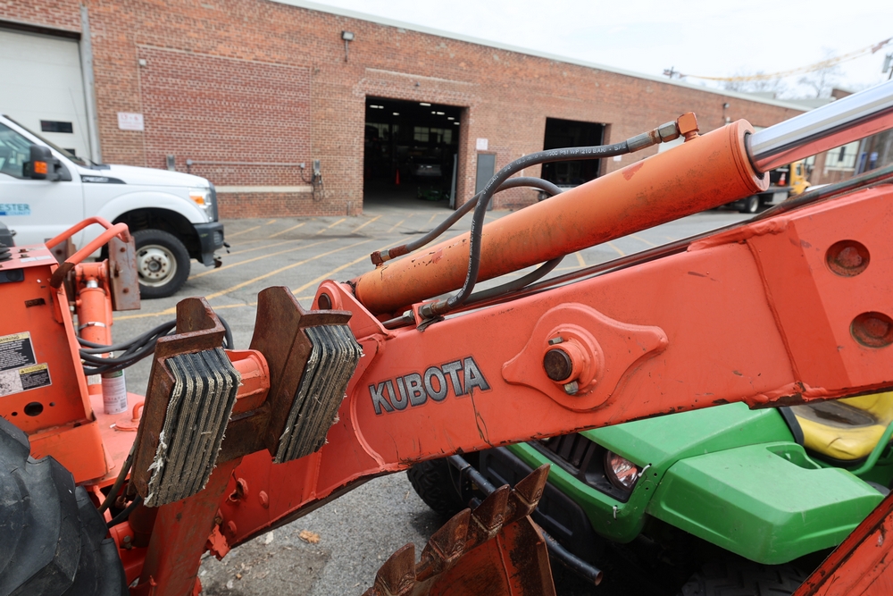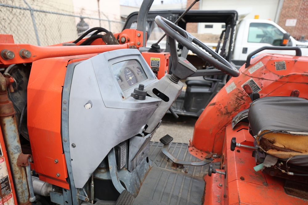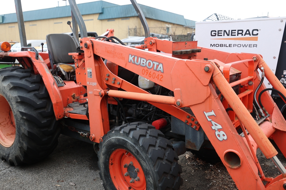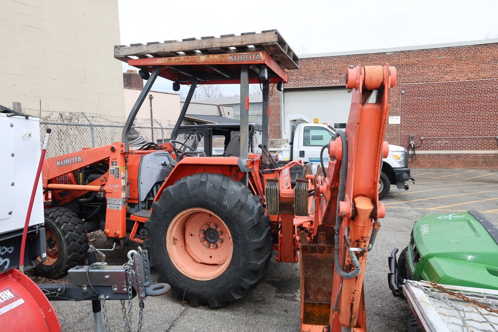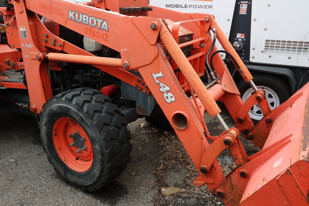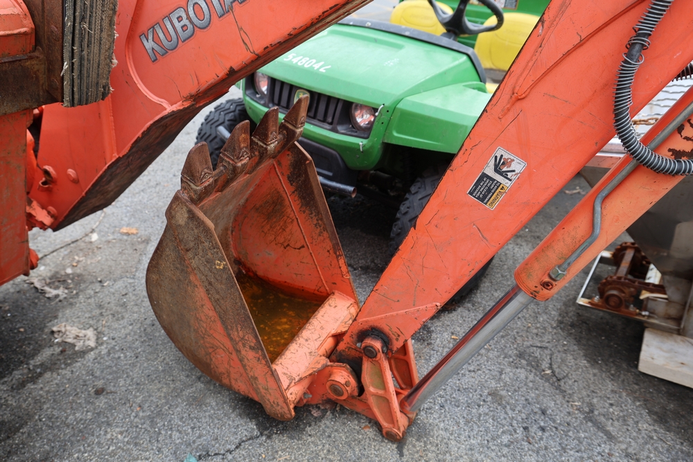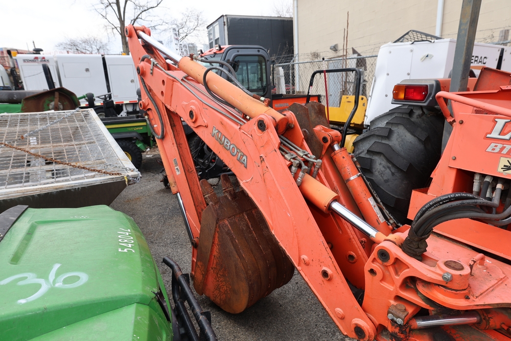 KUBOTA TRACTOR L48 W/BACKHOE LOADER. VIN: 62294. Odometer reading: 1448 hours. Seller reports: ENGINE N/G. KNOCKING AND SMOKING. OIL IN EXHAUST AND PRESSURE IN RADIATOR. Fleet #: 096042.