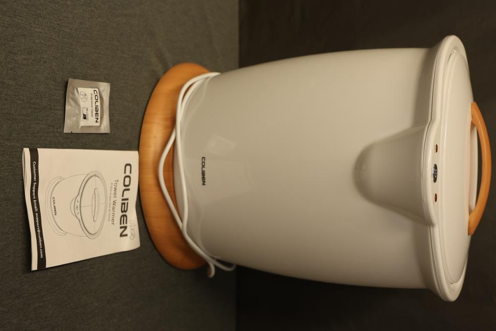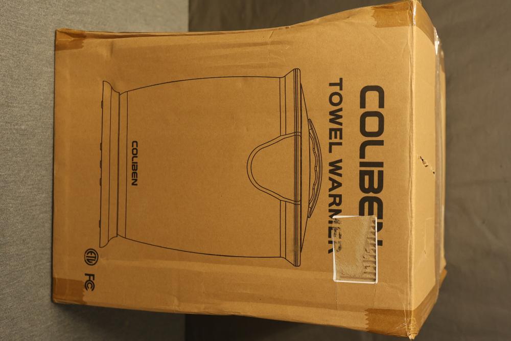 Coliben E1619 Towel Warmer with Dented Interior. The unit is functional and includes its original packaging and accessories. The interior contains visible dents but remains operational.