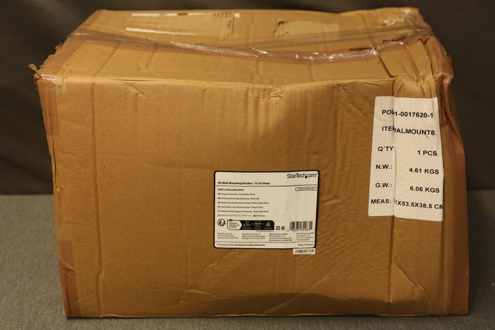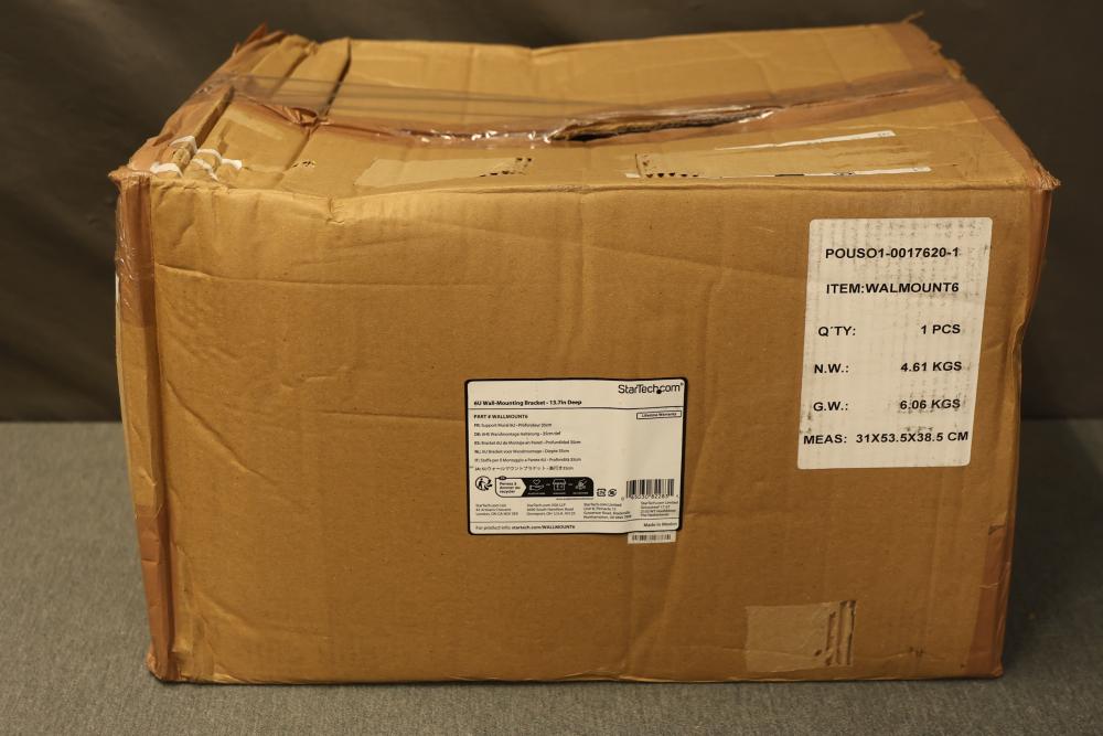 Startech WALLMOUNT6 6U Low-Profile Wall Mount Network Rack. Ideal for server and IT equipment. Measures approximately 10.75 inches high, 19.5 inches wide, and 13.75 inches deep. Item is in its original packaging, although the box shows signs of damage.