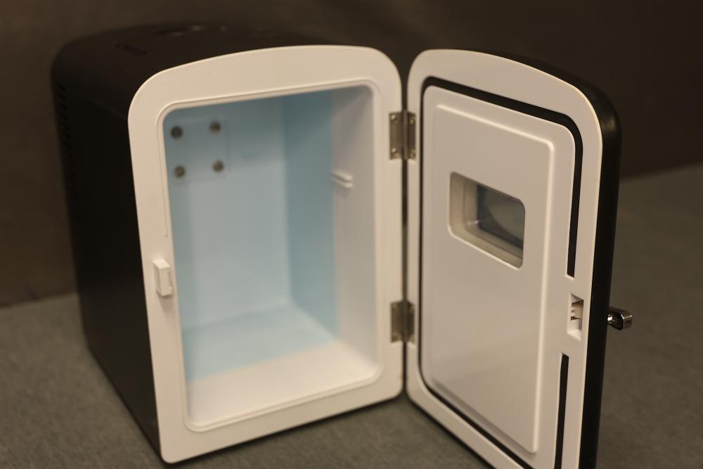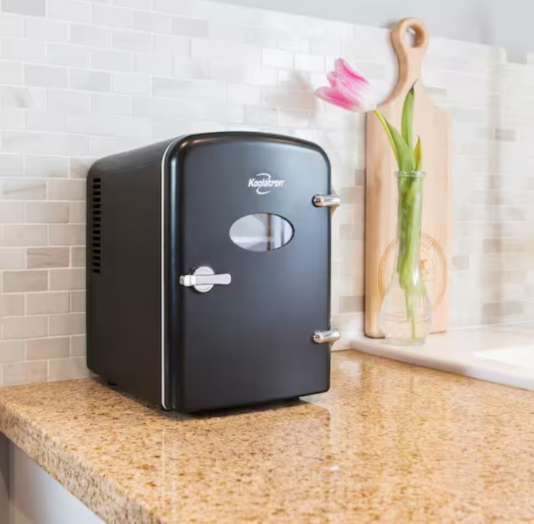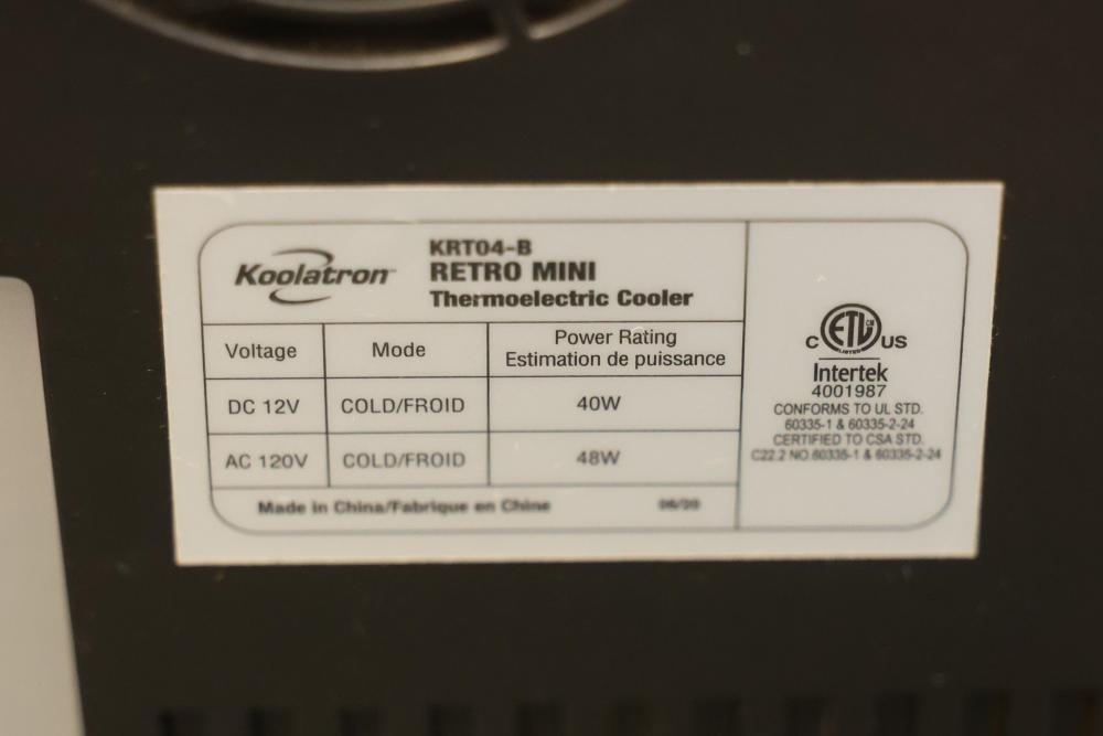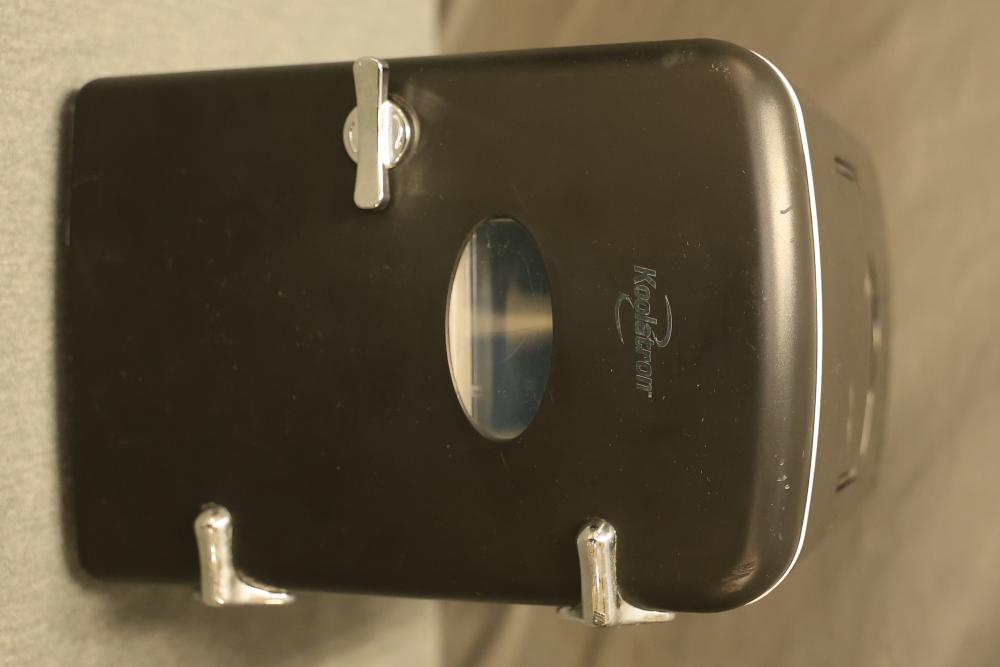 Lature CR-5118 4.2 Qt Air Fryer and Koolatron KRT04-B 4 Liter Retro Portable Mini Fridge. The air fryer includes two independent non-stick frying baskets and comes with its original manual. The mini fridge has a retro design but is missing the power cord.
