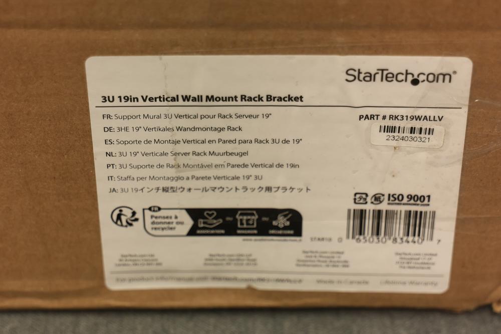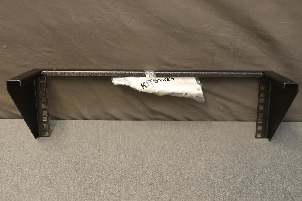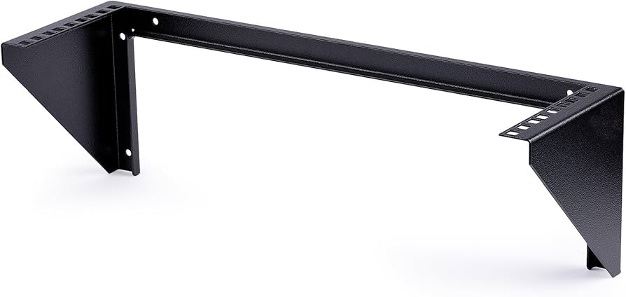 Duraline Set of 3 35.5 inch long by 4.75 inch wide Wooden White Floating Shelves and Startech RK319WALLV 3U 19 Inch Vertical Wall Mount Rack Bracket. The wall mount rack bracket is made of steel for additional support. Floating shelves are wall-mountable, and no hardware is included.