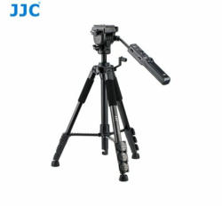 JJC TP-F2 Professional Remote Control Tripod with Carrying Case. Measures approximately 20 inches collapsed to a maximum height of 59 inches. Includes remote control functionality and telescopic legs. Comes with a protective carrying bag and includes instructional materials. Designed for versatile photography and videography setups.