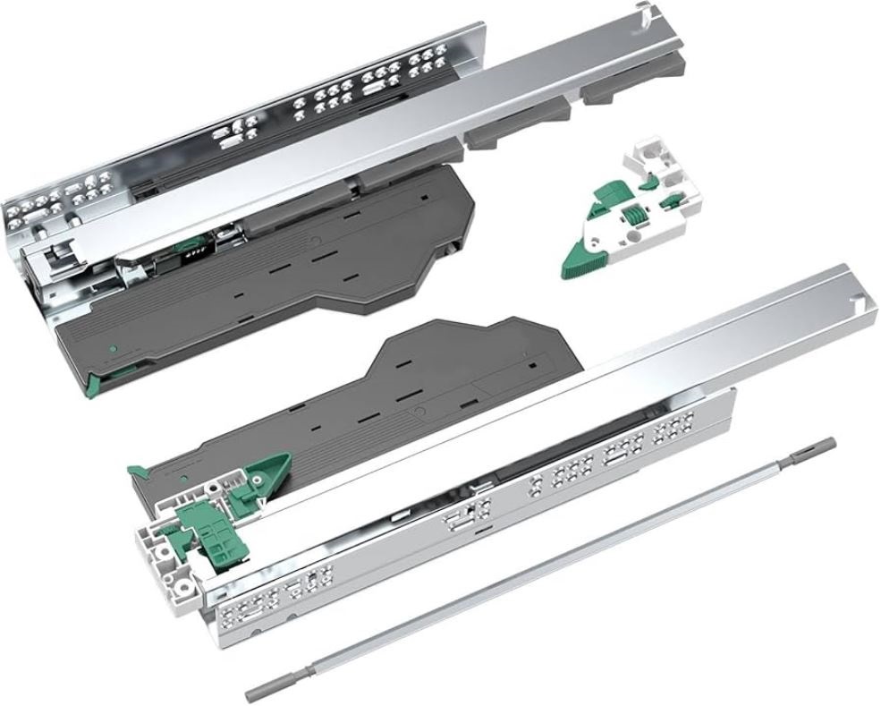 SIGOEI 316DCA80-E 3-Fold Push-Open and Soft Close Bottom Mount Concealed Slide for 16mm and 18mm Panel. Strictly fits side boards less than or equal to 5/8ths of an inch thick and will not lock on 3/4s of an inch thick sides. Includes original packaging and instructions.
