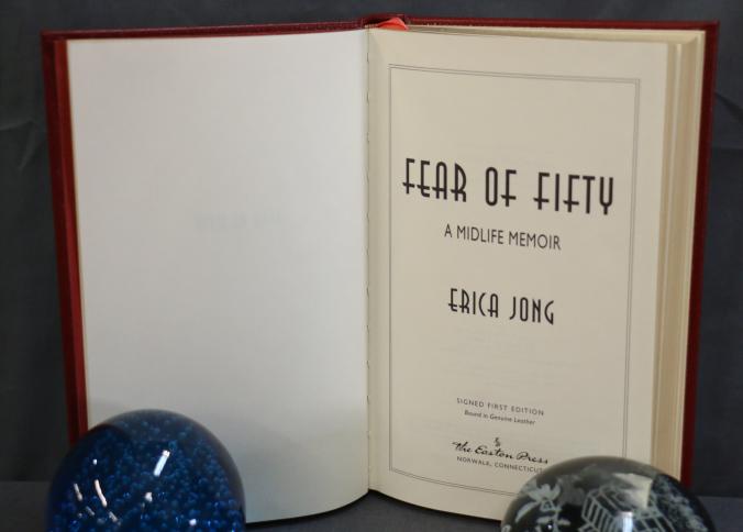 Fear of Fifty: A Midlife Memoir by Erica Jong, Signed First Edition. Leather-bound by The Easton Press with gold-tone embossed cover design and gold leaf page edges. Features the author's signature on a designated page. Copyright 1994 by The Easton Press.