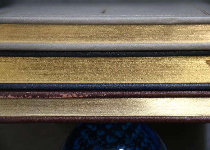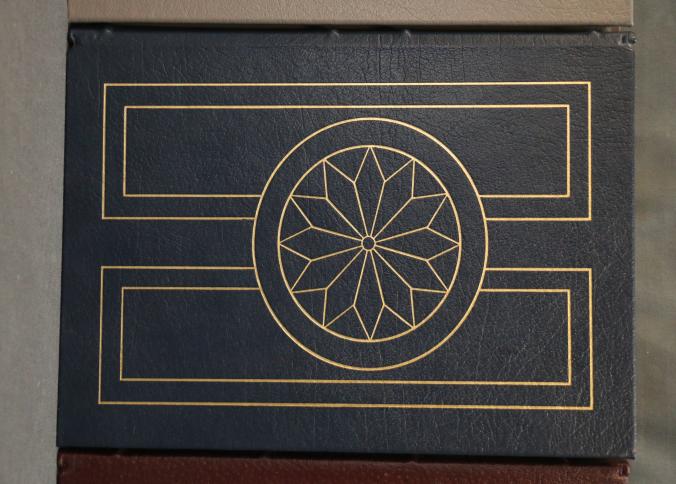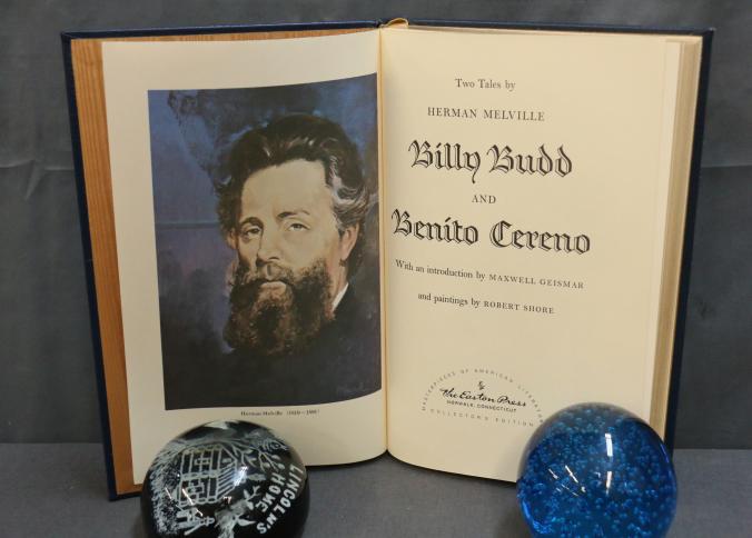 Easton Press Leather-Bound Book Set: Saint Thomas Aquinas, Billy Budd and Benito Cereno, Maggie. This set features three leather-bound editions with gold leaf-edged pages, decorative covers, and illustrations throughout. Each book is part of collector's editions published by The Easton Press with copyright dates ranging from 1965 to 1985.