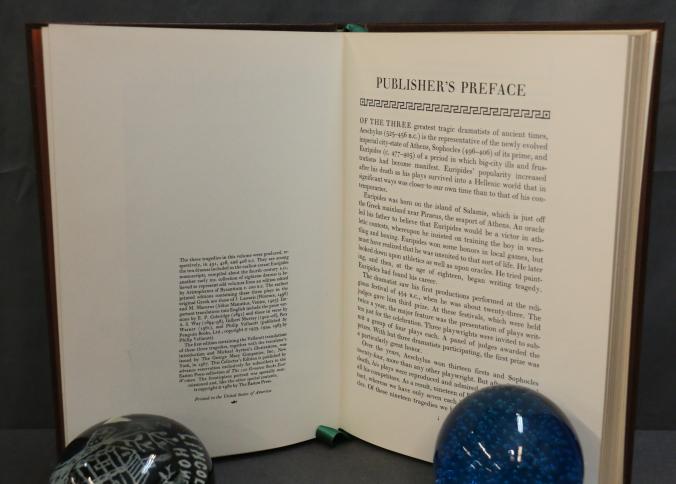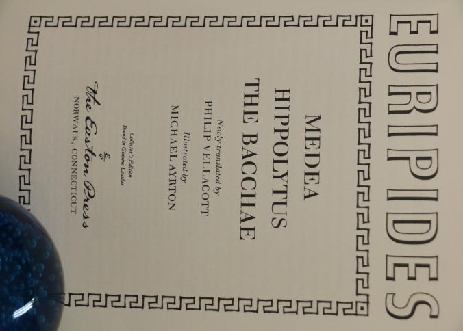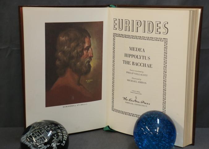 Easton Press Leather-Bound Editions: Euripides and Ivanhoe. Includes 'Medea, Hippolytus, The Bacchae' by Euripides, translated by Philip Vellacott with illustrations by Michael Ayrton, and 'Ivanhoe' by Sir Walter Scott, illustrated by Edward A. Wilson. Both volumes are collector's editions bound in genuine leather with gold leaf detailing and ribbon markers. Copyright 1977 and 1980 by The Easton Press.