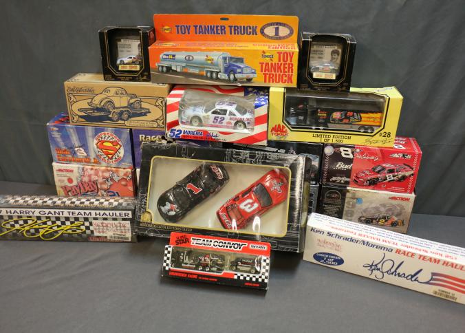 Die-Cast Race Car Models and Collectibles with Limited Editions, including Team Convoy Goodwrench Racing, Sunoco Toy Tanker Truck, Davey Allison Champion Forever models, Mac Tools Racing, and various branded 1:24 and 1:64 scale race cars. Includes limited-edition models such as Dale Earnhardt Jr.'s cars and several team haulers. Pickup only.