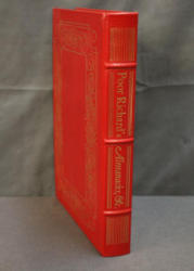 Poor Richard: The Almanacks by The Easton Press, 1965. Hardcover edition featuring ornate red binding with gold-tone embossed detailing. Includes illustrated pages and artwork, as well as a preface and detailed contents by Richard Saunders (pseudonym of Benjamin Franklin). The special contents are copyrighted 1965 by The Easton Press.