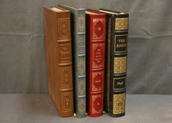 Easton Press Collector's Editions of Four Classic Literary Works. Includes 'The Talisman' by Sir Walter Scott, 'She Stoops to Conquer' by Oliver Goldsmith, 'The Red and the Black' by Stendhal, and 'The Aeneid' by Virgil. Bound in genuine leather with gold leaf spines and edges, each volume features illustrations and introductions by notable contributors. Copyright 1976, 1978, 1979, and 1980 by The Easton Press.