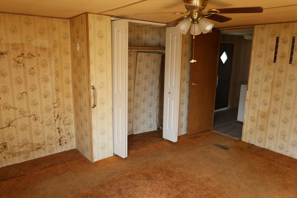 The mobile home sells with the contents shown. No representations are made regarding the condition, operability, age, or code compliance of any components. No real estate is conveyed with the sale. Buyer is responsible for removal of the mobile home from the property.