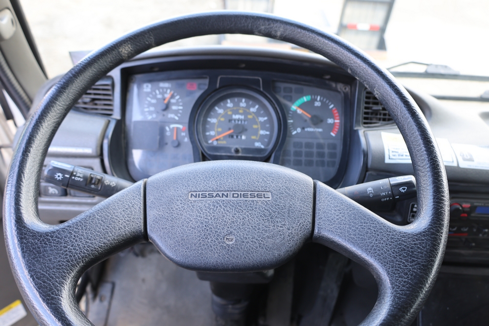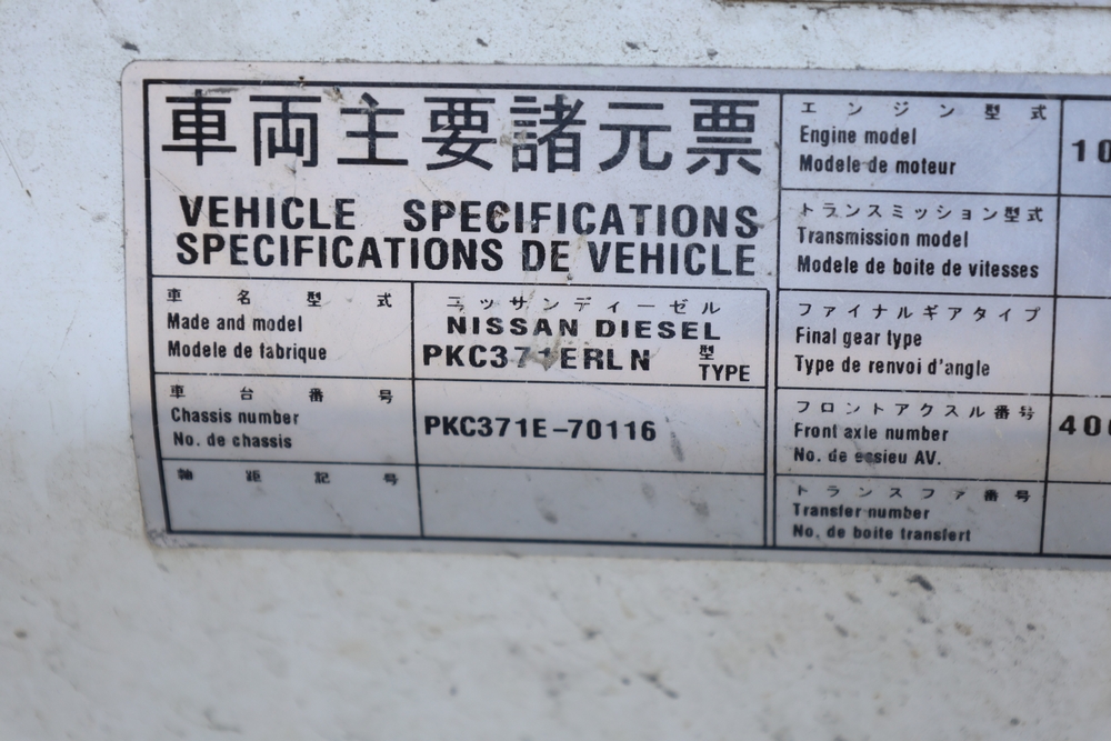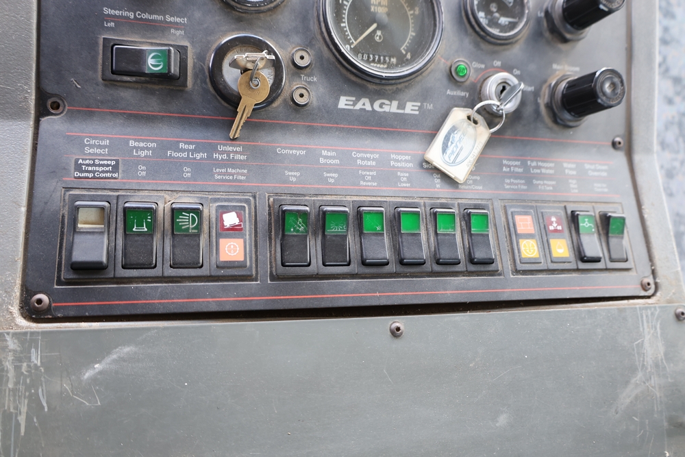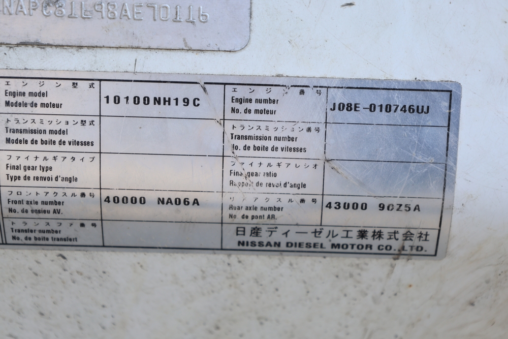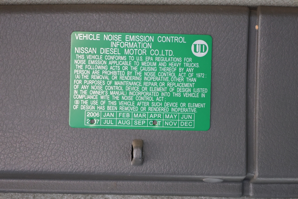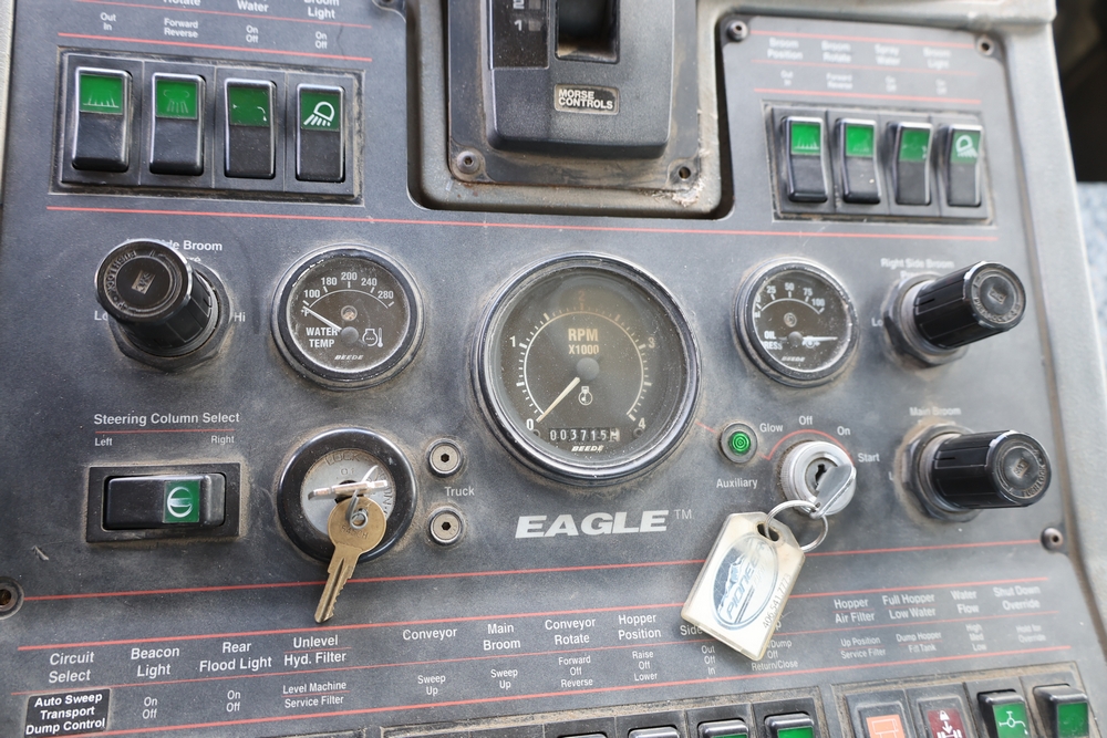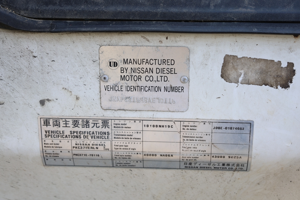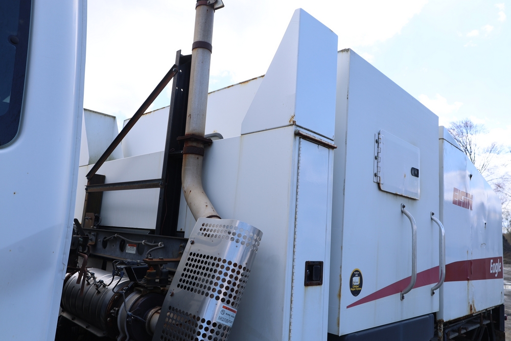 2008 Nissan UD3300 Elgin Sweeper Truck with a J08E-UJ diesel engine. VIN: JNAPC81L98AE70116. Odometer reading: 53432, hour meter reading 3715. Body: truck. Cab over engine configuration; 4x2 drive; air brake system; Elgin Eagle street sweeper body; dual side mounted rotary brushes; rear sweeping assembly; control console with switches and gauges; automatic transmission selector; AM/FM CD radio; heater and air conditioning controls. Runs, drives, and operates. Key and transferable registration available.