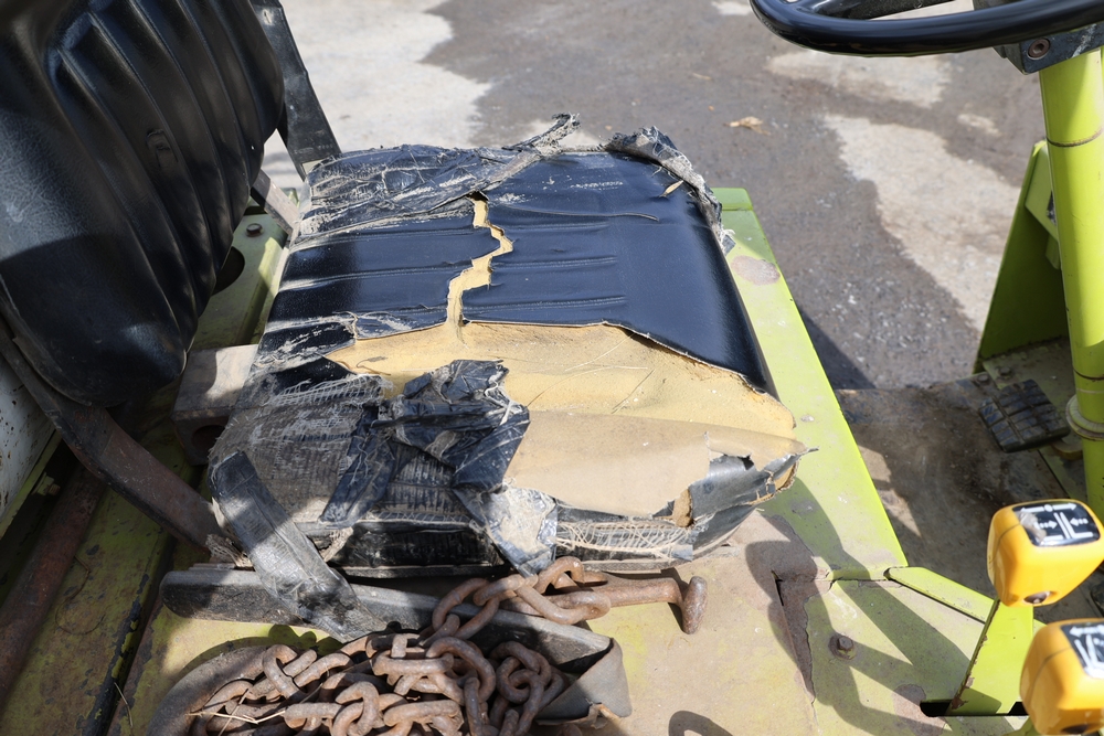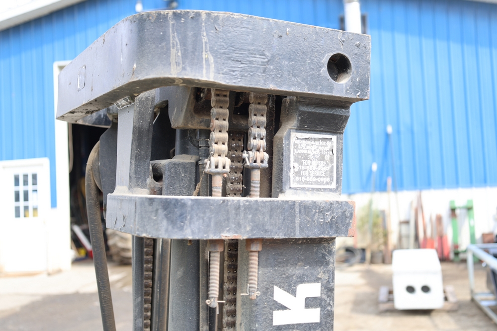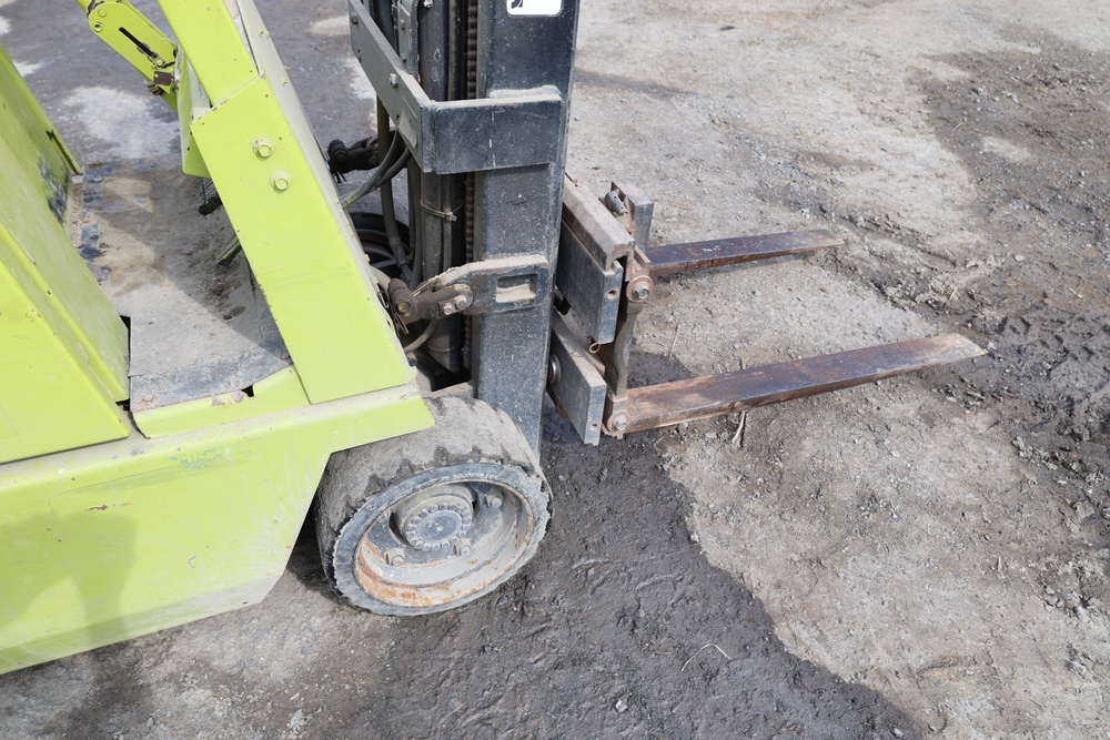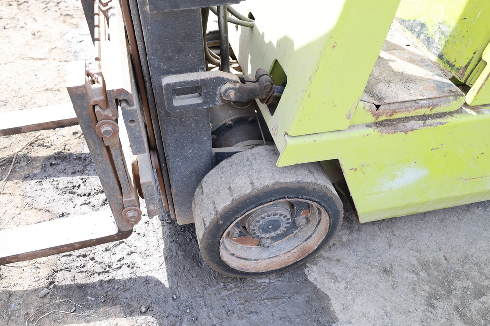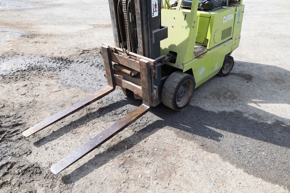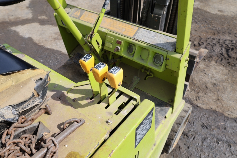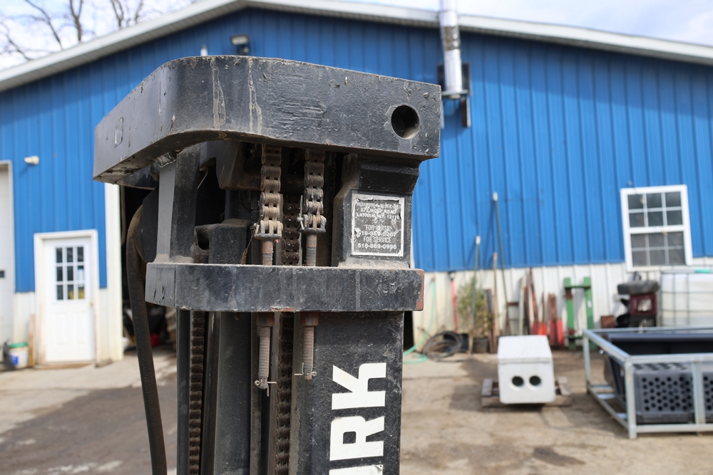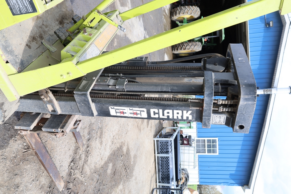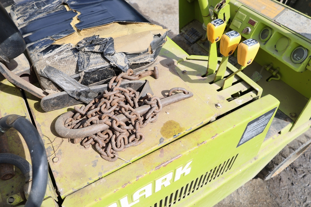 Items include Clark GCS15 forklift; Wain Roy excavator bucket; Armstrong All Traction Field & Road agricultural tires; precast concrete jersey barriers; steel loader quick attach plate; Renken fiberglass sailboat; F.S. Converse Co. coal handling conveyor; straw wattles erosion control logs; stainless steel gas-fired kettles; American Range commercial stainless steel floor fryer & more. Items are located in Rhinebeck, NY.