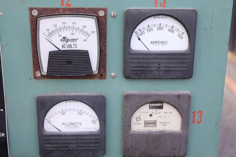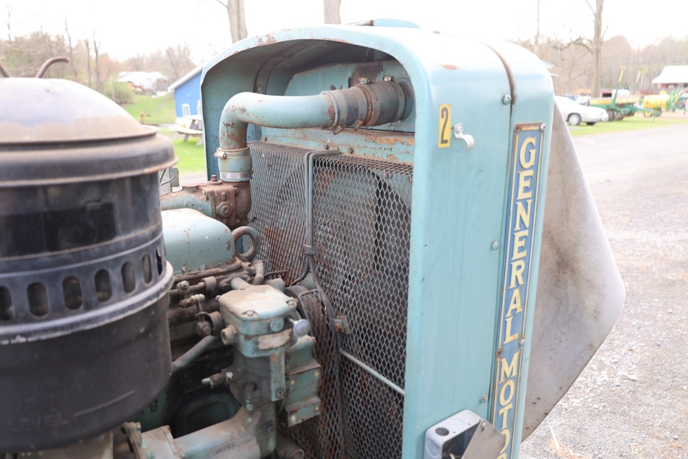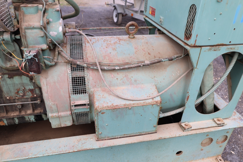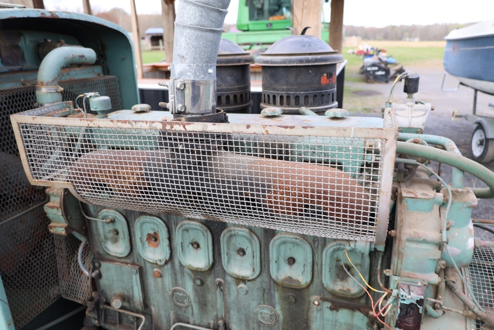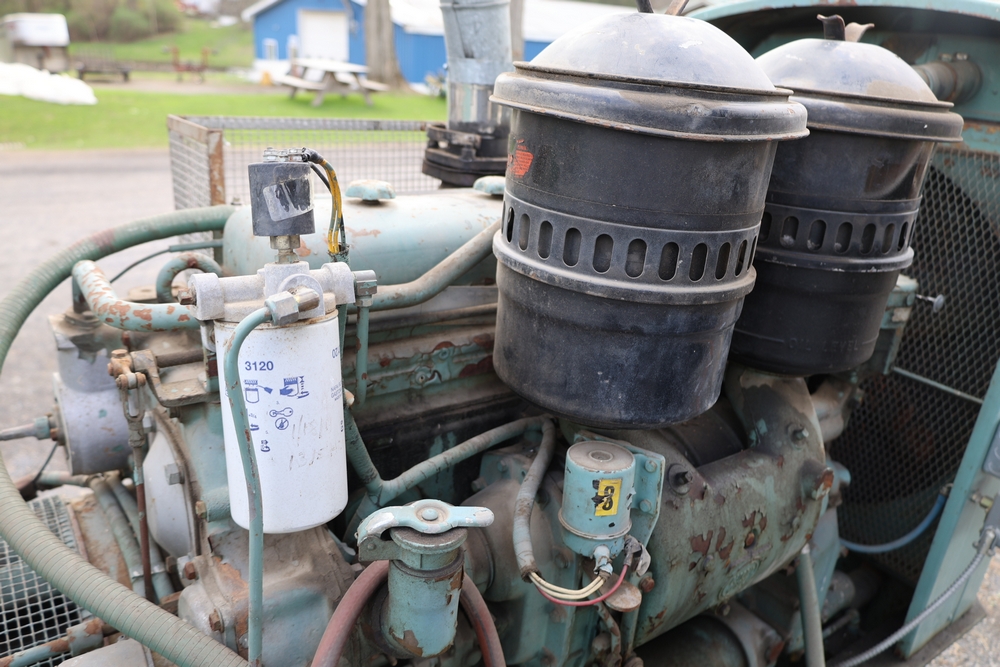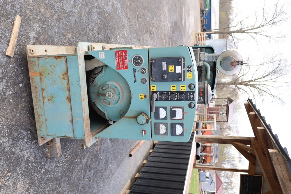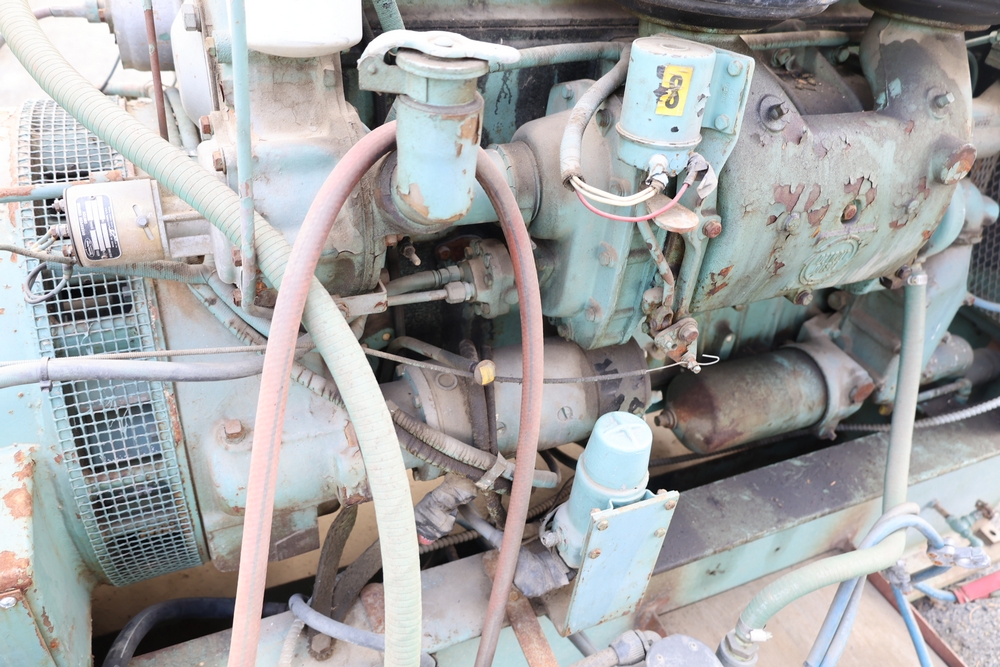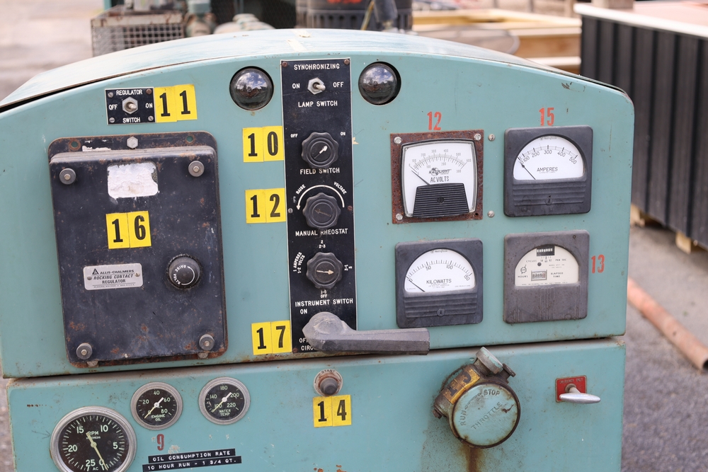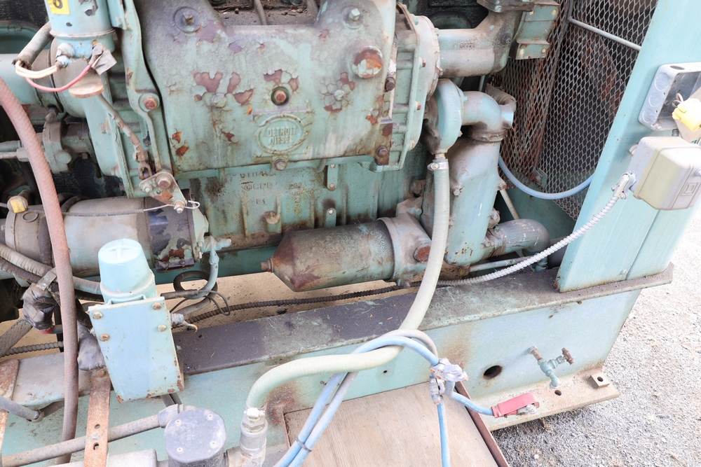 Delco A.C. generator unit with General Motors engine, model 146834, rated 100 kW, 125 kVA, 3 phase, 60 cycles, 1800 RPM, 208-240/116-480 volt output, skid mounted with control panel, gauges, switches, muffler, dual air cleaners, and attached wiring.