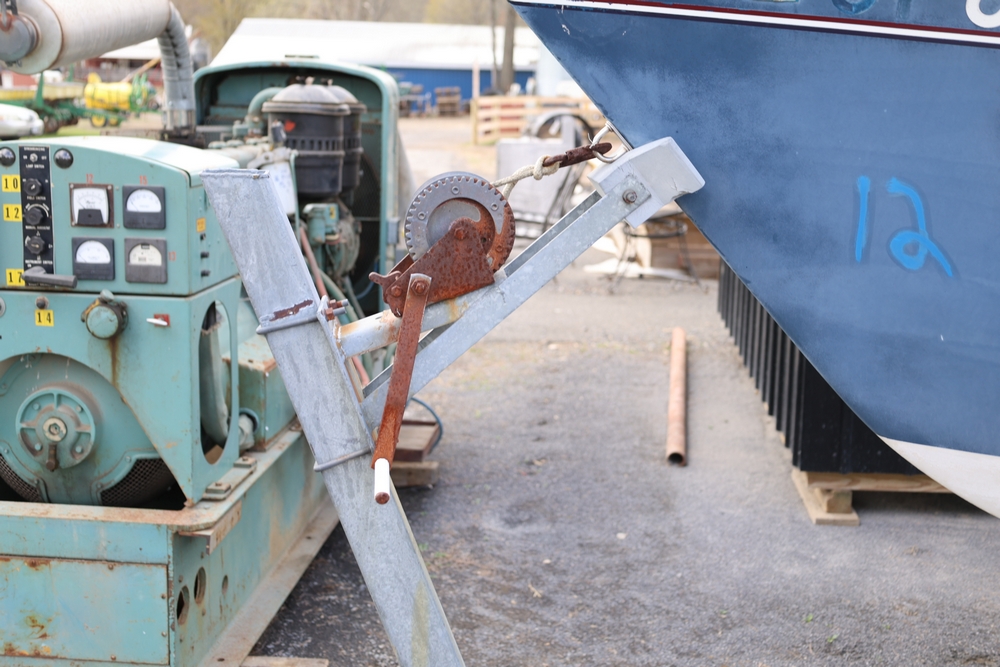 Items include Clark GCS15 forklift; Wain Roy excavator bucket; Armstrong All Traction Field & Road agricultural tires; precast concrete jersey barriers; steel loader quick attach plate; Renken fiberglass sailboat; F.S. Converse Co. coal handling conveyor; straw wattles erosion control logs; stainless steel gas-fired kettles; American Range commercial stainless steel floor fryer & more. Items are located in Rhinebeck, NY.