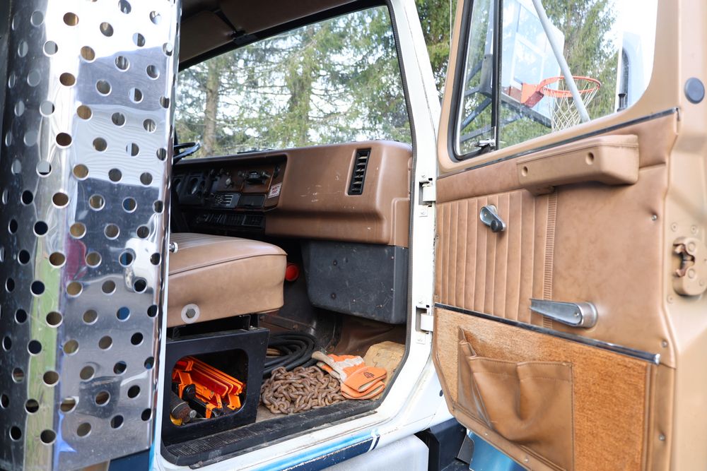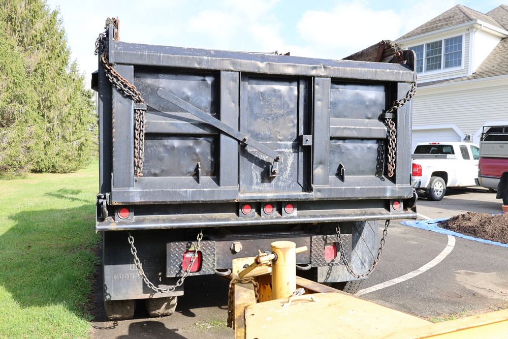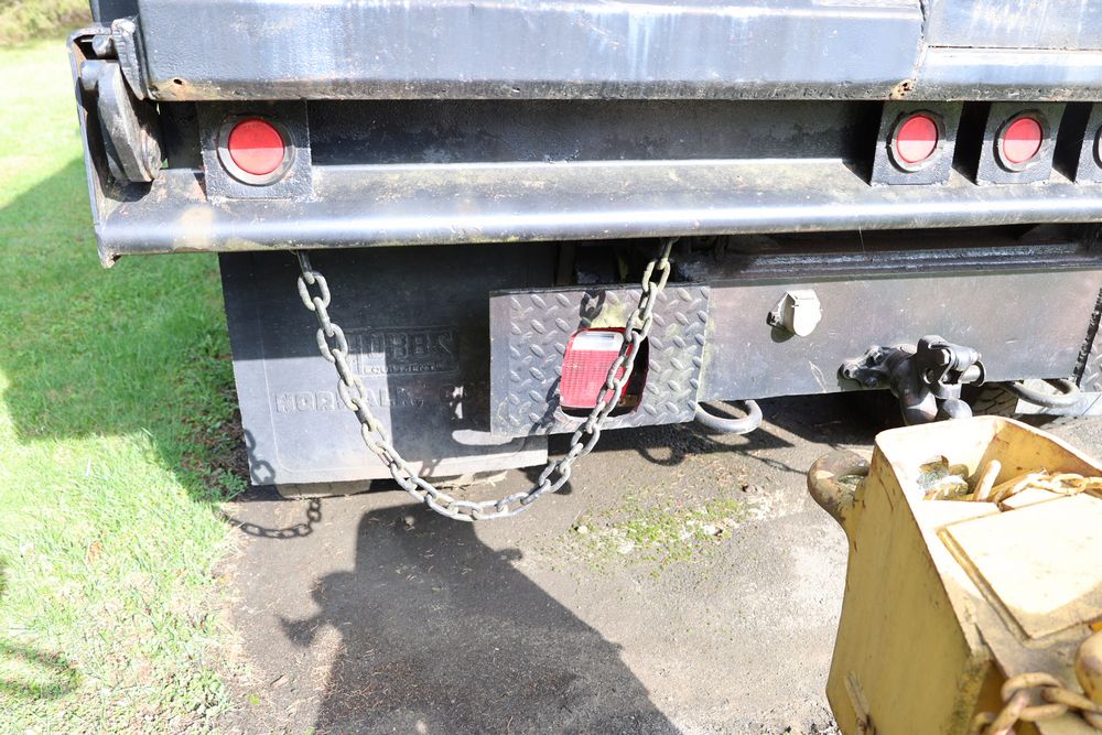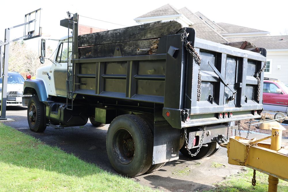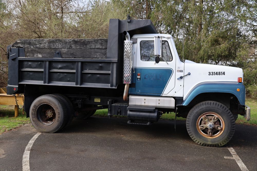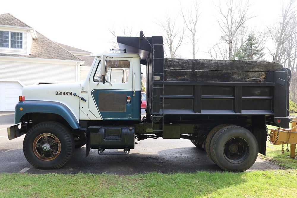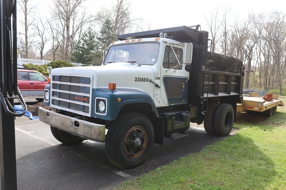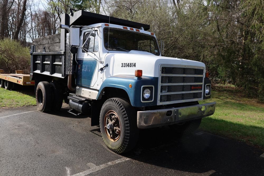 Items include 1988 International 554; 2018 Eager Beaver TL3 9 ton equipment trailer & two steel road plates. Items are located in Bethel, NY.