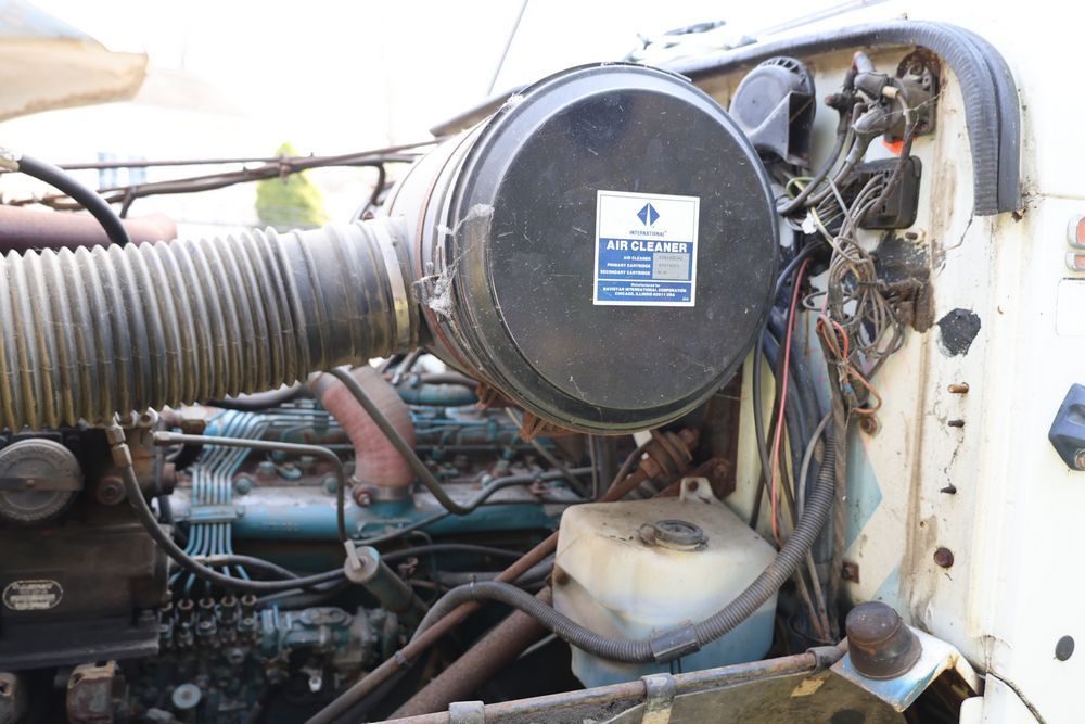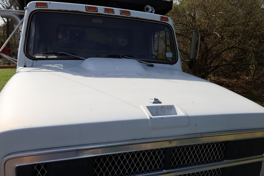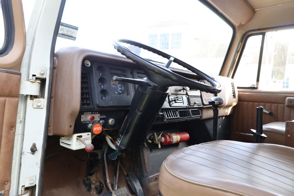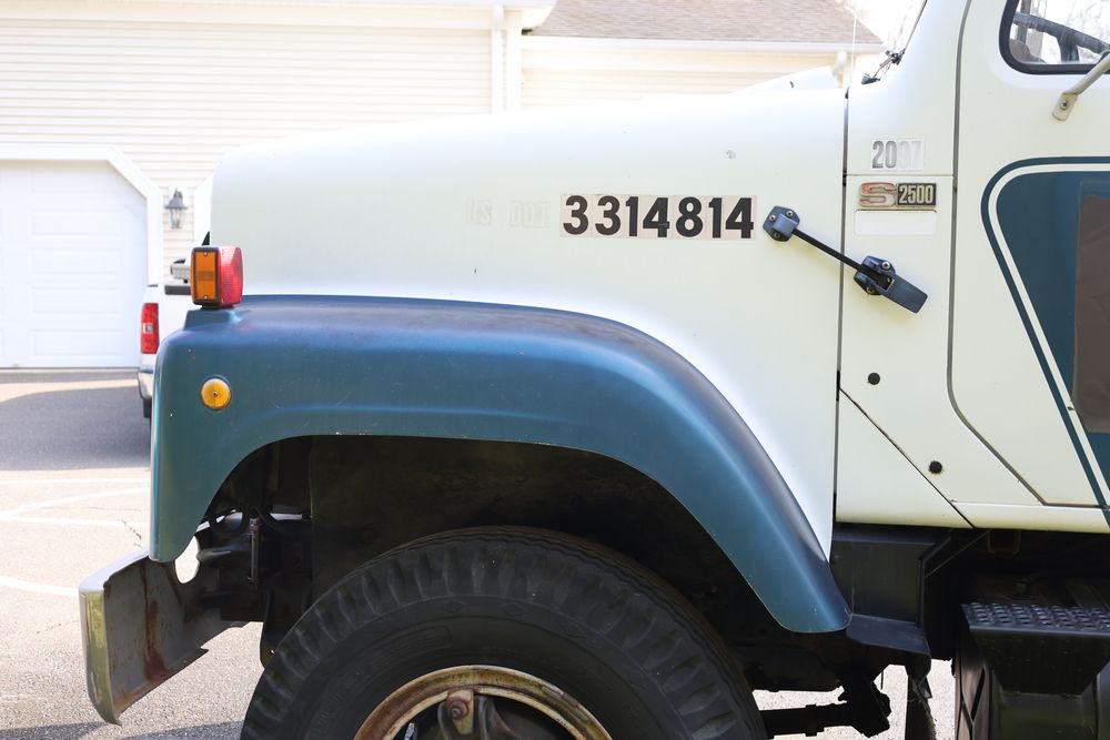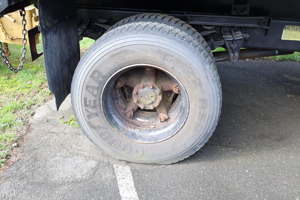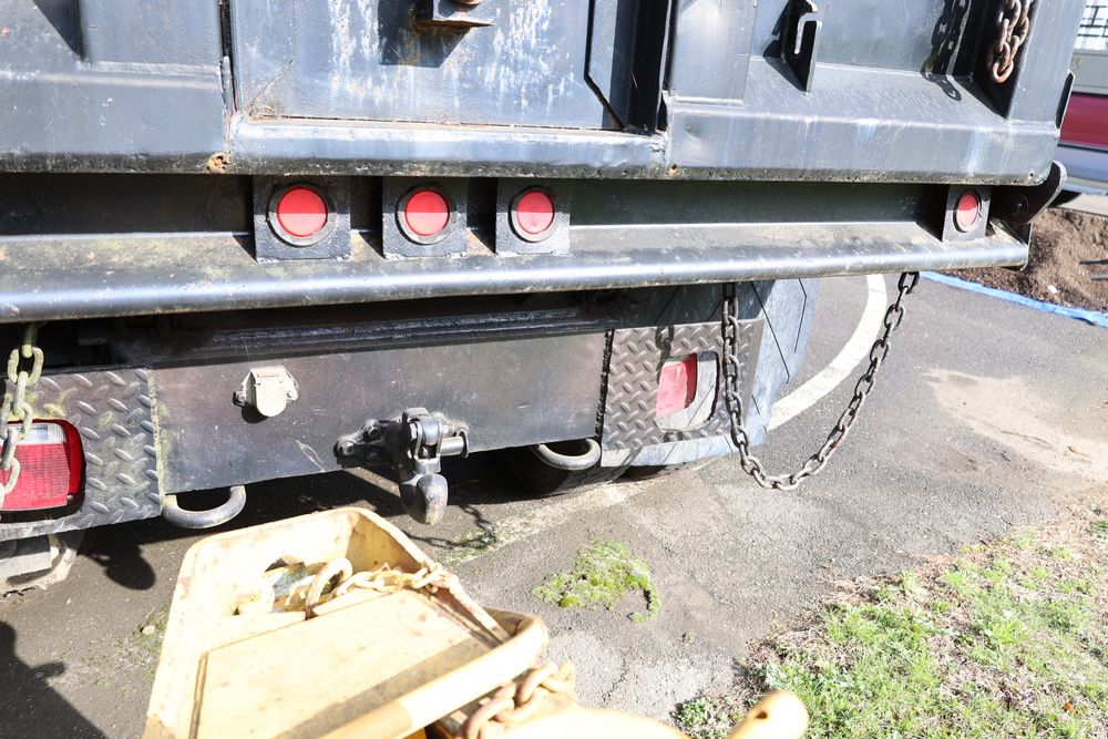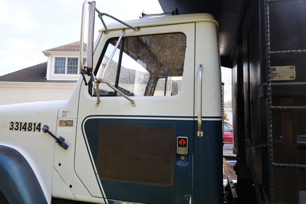 1988 International 554 with a 7.6L L6 diesel engine. VIN: 1HTZLDBN9JH574536. Odometer reading: 26333. Body: conventional cab. Dump body with wood side boards; rear tailgate with chains; dual rear wheels; manual transmission with floor shifter; exterior mirrors; front bumper; hour meter reading 1762. Runs, drives, and operates. Title and key available.