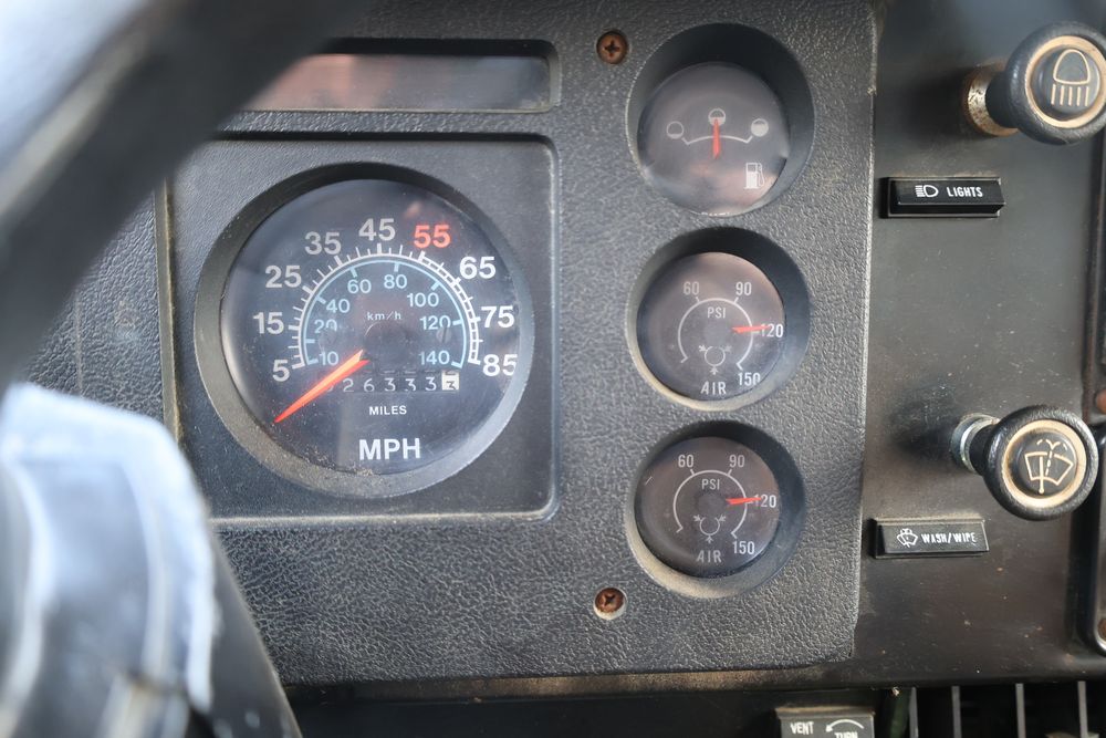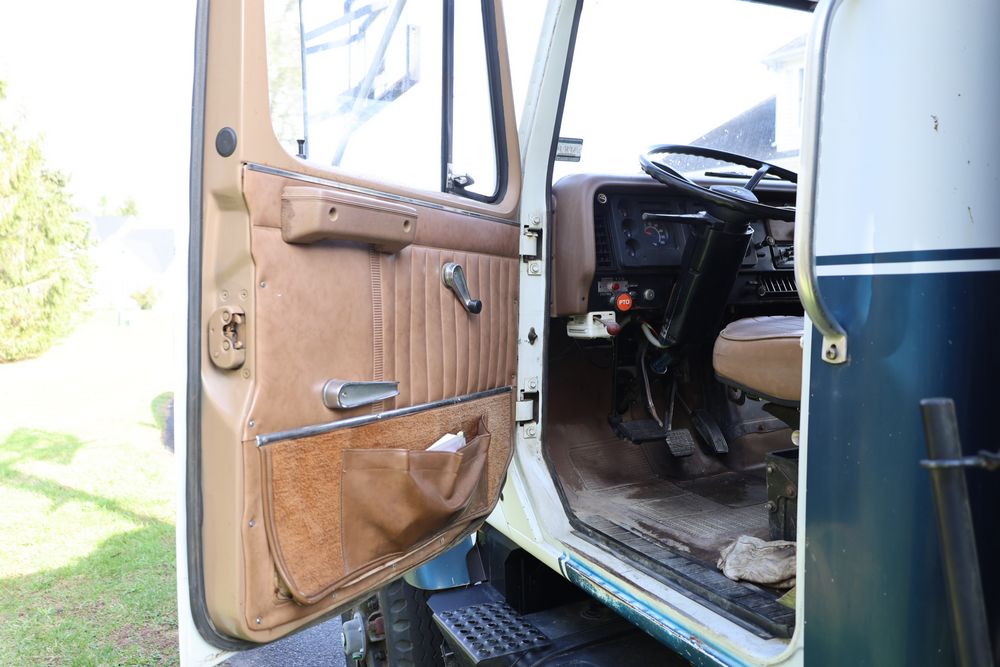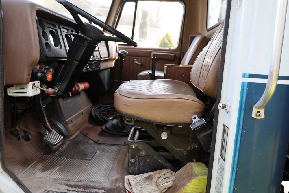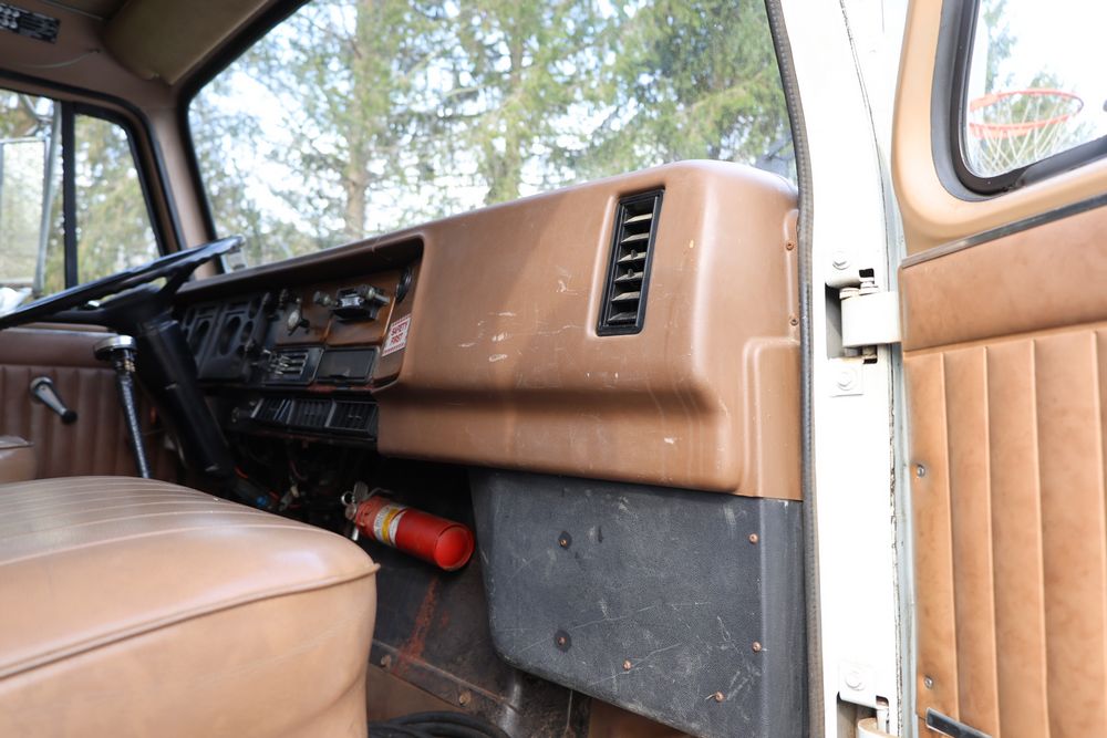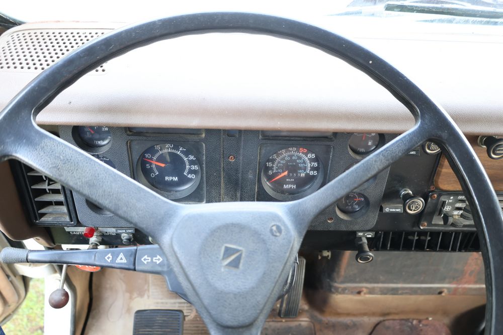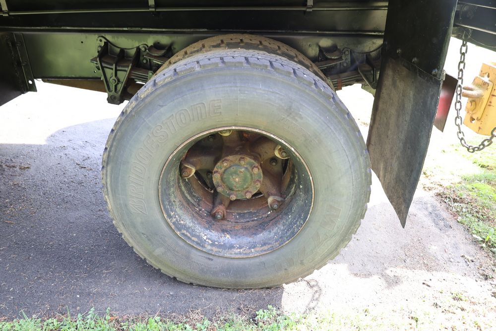 1988 International 554 with a 7.6L L6 diesel engine. VIN: 1HTZLDBN9JH574536. Odometer reading: 26333. Body: conventional cab. Dump body with wood side boards; rear tailgate with chains; dual rear wheels; manual transmission with floor shifter; exterior mirrors; front bumper; hour meter reading 1762. Runs, drives, and operates. Title and key available.