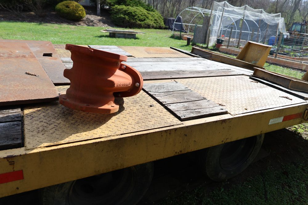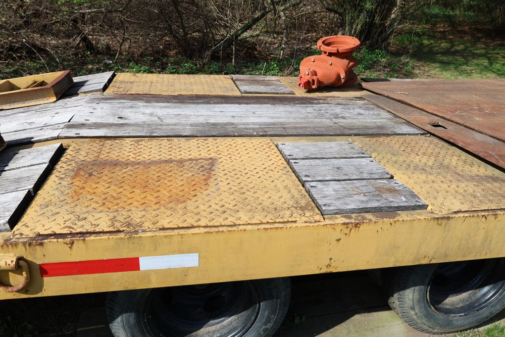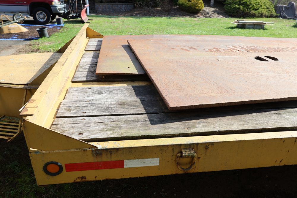 Items include 1988 International 554; 2018 Eager Beaver TL3 9 ton equipment trailer & two steel road plates. Items are located in Bethel, NY.