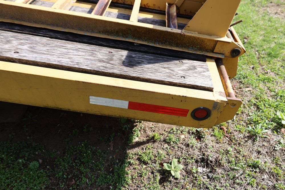 2018 Eager Beaver TL3 9 Ton equipment trailer; VIN 112HDB204JT090160; tandem axle dual wheel setup; wood deck; rear loading ramps; pintle hitch with jack stand; tie down points along sides; includes chains, binders, crate, and contents in front compartment. Excludes all items on the trailer. Title available.