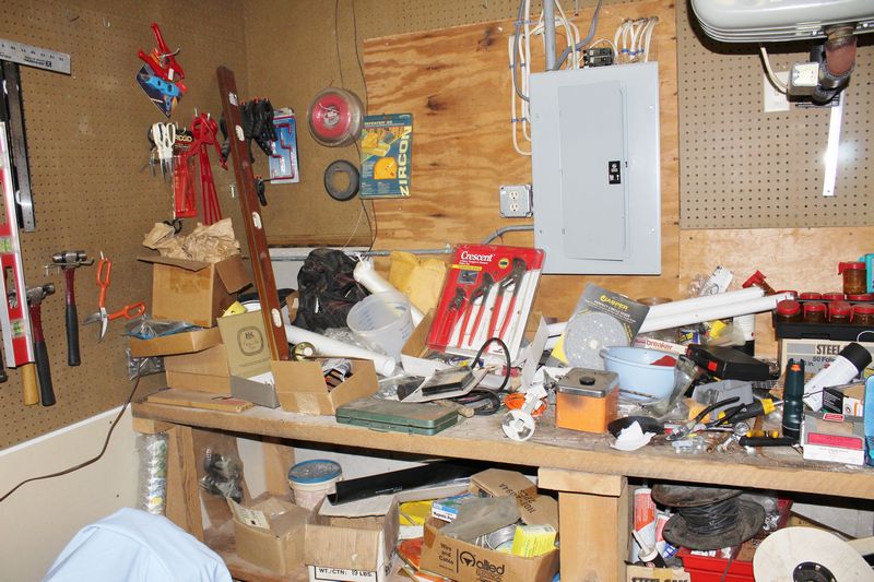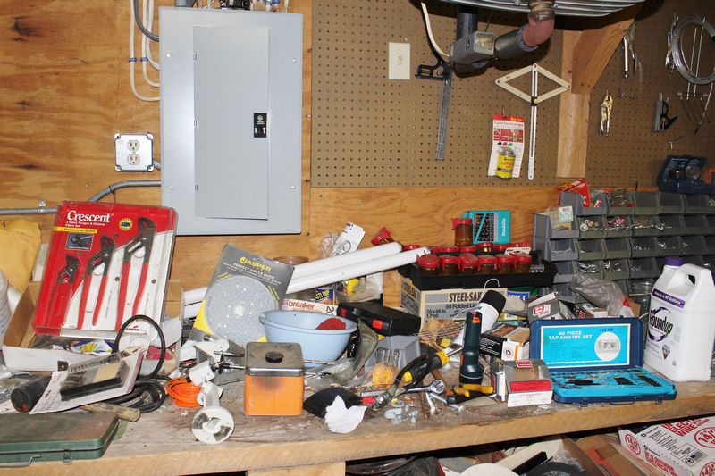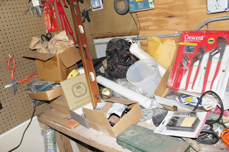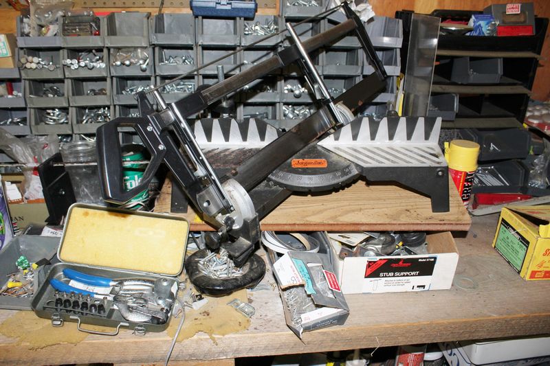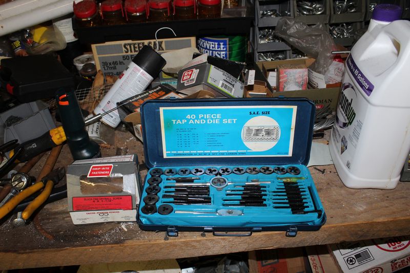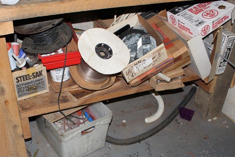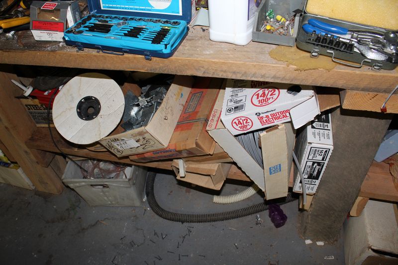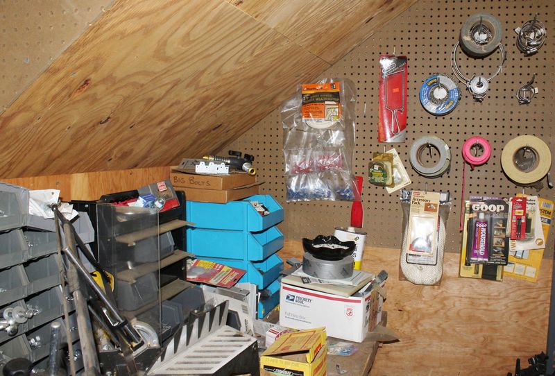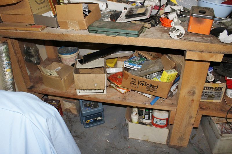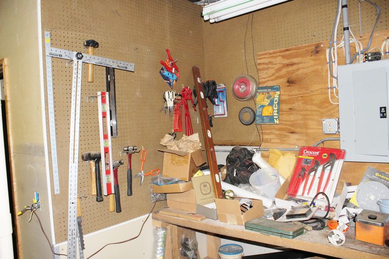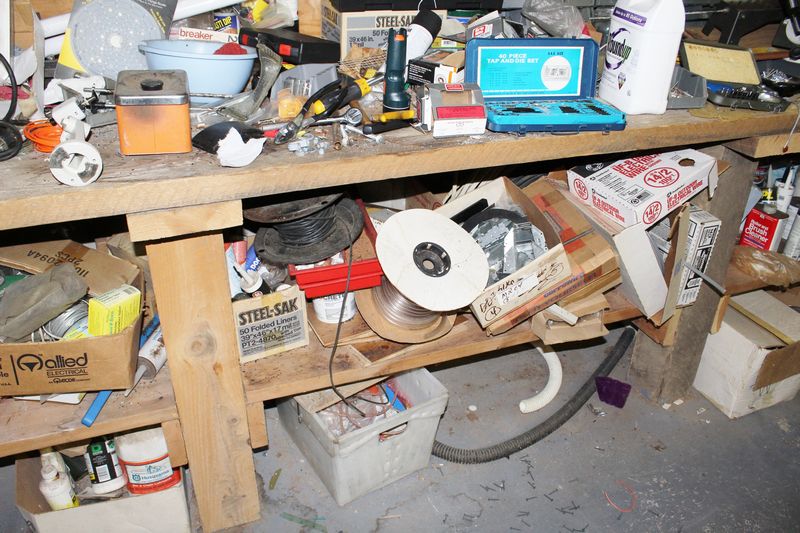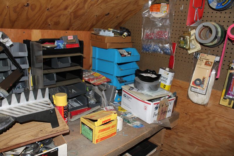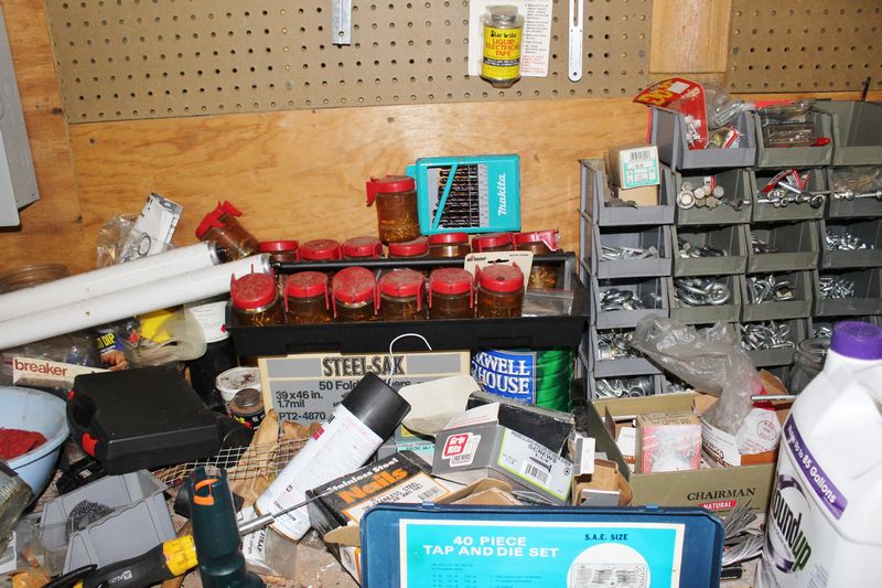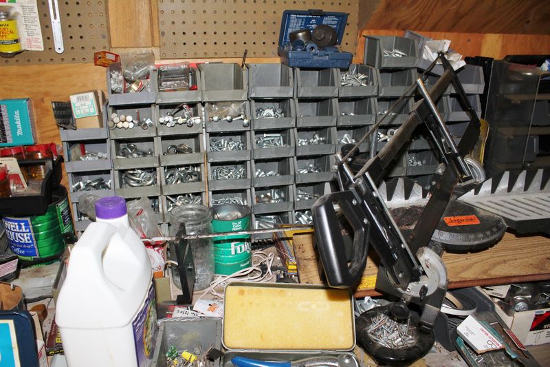 Shop bench contents including hardware, tools, etc. Items are being sold buyer choice. Winning bidder may take what they want and leave the balance. Bench and fixtures are not included.