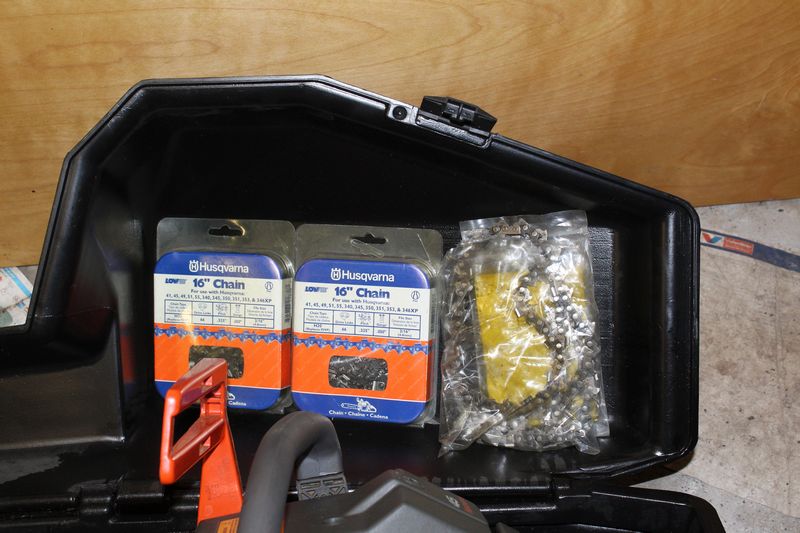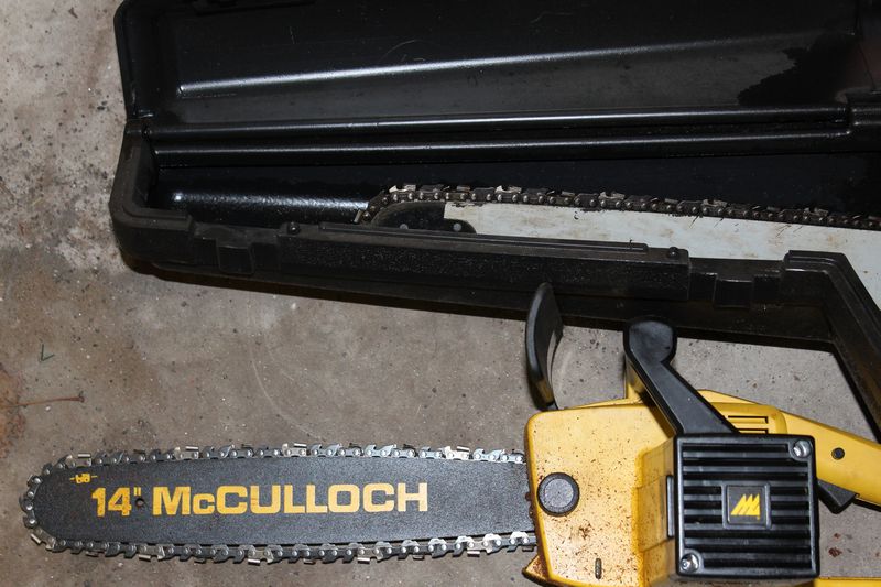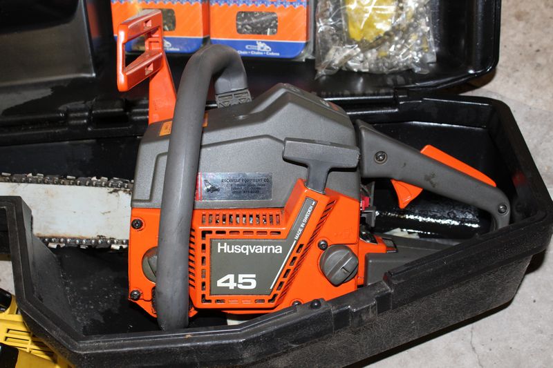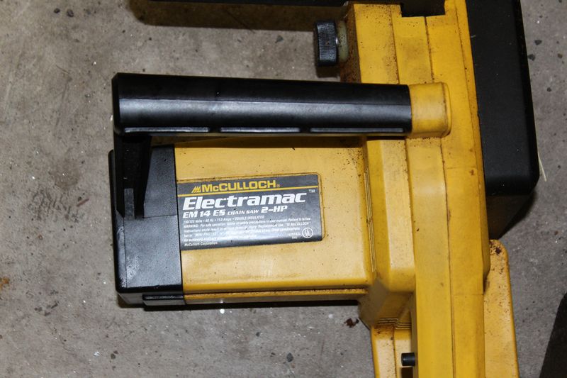 Huskvarna 45 gas powered chain saw and Mcculloch 14" electric chain saw. The Huskvarna saw has compression and was in working condition a few months ago. The Mcculloch wasn't tested.