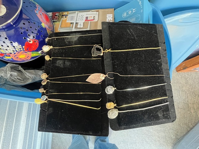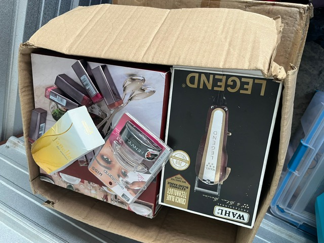 Contents of 10' x 10" storage unit being sold by the storage unit tenant. Items include: Relocating lots of new items; lots of new clothes, sizes various; new purses, new book bags; commercial carpet cleaner; pellet grill; 20' extension ladder; four barber chairs; jewelry, silver; Bostitch compressor; wet & dry vac; new pots & pans dish sets; new Halloween inflatable; ice cream cooler; commercial coffee grinder; Encore Proline 48" walk-behind needs TLC; Stihl chainsaws; boxed Hess trucks, vintage; advertising beer signs with lights; tons of brands: Nike, Michael Kors, Polo, Coach, Mudd, Stihl; great for resellers. The functionality of electric/electronic items are unknown. Authenticity is not checked nor guaranteed on any & all items. Items are located in Highland, NY.