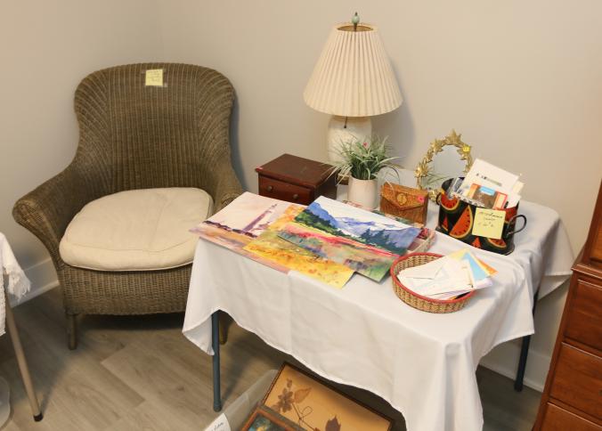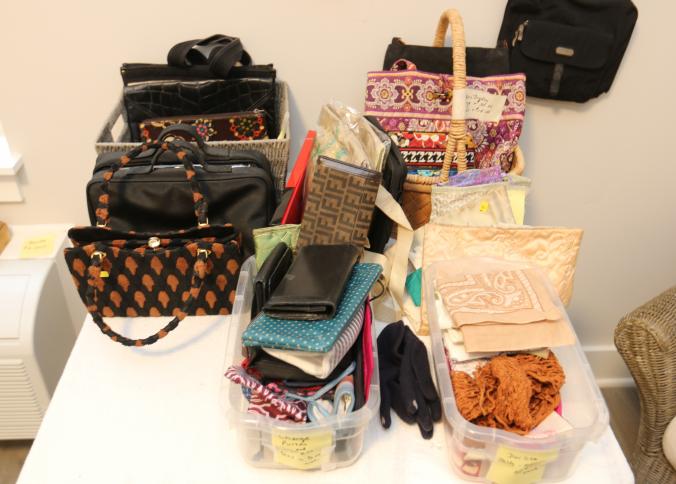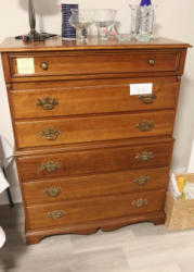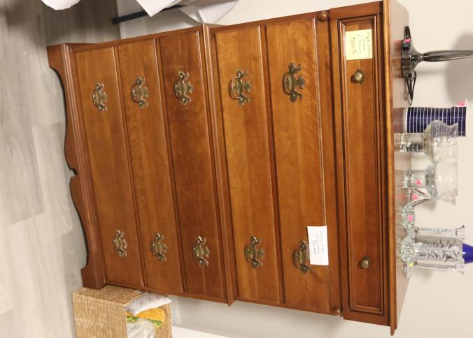 Items include Century Furniture Chest of Drawers;, Bags, Purses, Wallets, and Accessories; Oak Wood-Framed Rectangular Mirror with Dark Finish; Home Electronics, Furniture, and Decor; Framed Artworks and Prints Featuring Various Subjects; Bassett Loveseat; Kitchenware Including Utensils, Dinnerware, and Small Appliances; Vietnam Veterans Memorial Plates by Dave Troutman & more. Items are located in Poughkeepsie, NY.