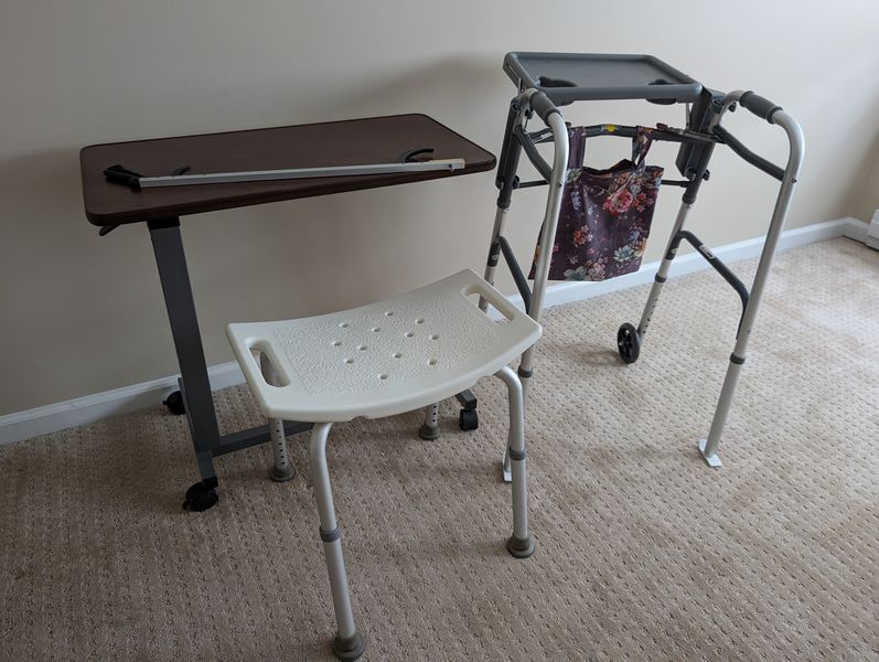 Vacuums and Medical Equipment. Vacuums include Bissell Pet Hair Eraser; Sharp Navigator broom vac; medical table; shower seat; walker. Loc in lower level with walk out.