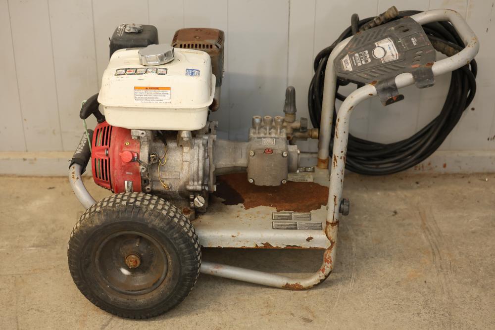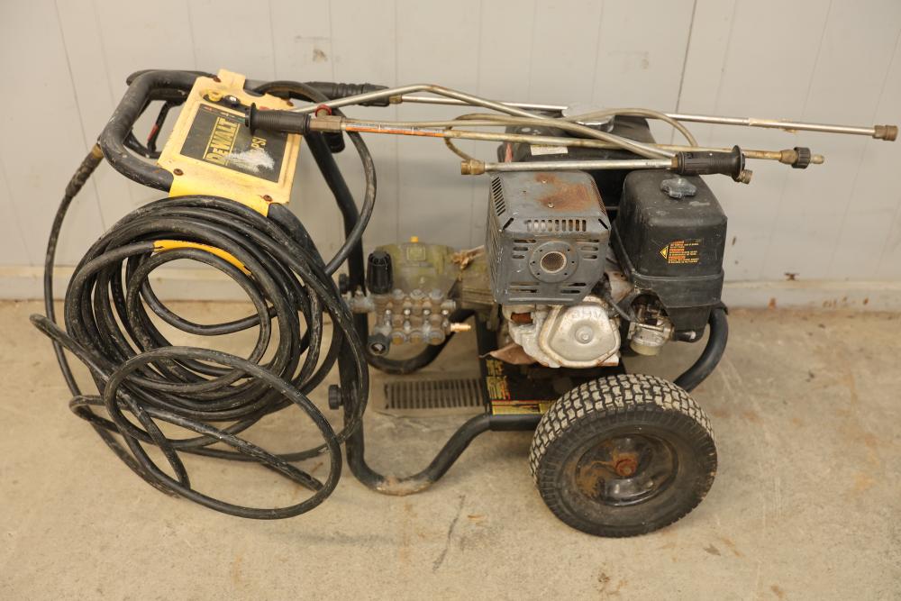 Items include dirt bike with Lifan 200 cc 5-speed manual four-stroke engine; Airco oxy-acetylene welding & cutting torch set; Jack Boss motorcycle stand; Cortex Muffler 45 Series Round 4518CC3030; DeWalt DXPW4440 gas-powered cold water pressure washer; Ridgid R4513 10" table saw with portable stand; TBOZZ chrome angled spring-loaded mud flap hanger; variety of vintage woodworking/construction tools; 6' aluminum ladder; Keller 504 4' aluminum ladder; PullRite weight-distributing hitch; vintage woodworking planes/wrenches/hinges; vintage calipers & spades; vintage cranks & ropes; metal vintage tools: chain links/clamps; vintage hammer/mallet set; LED light bar set & crossbar roof rack; vintage axe set; wooden yoke/harnesses/saddles; Green Steel hand trucks & more. Items are located in Pleasant Valley, NY.