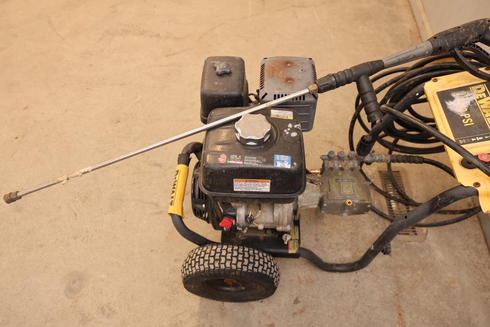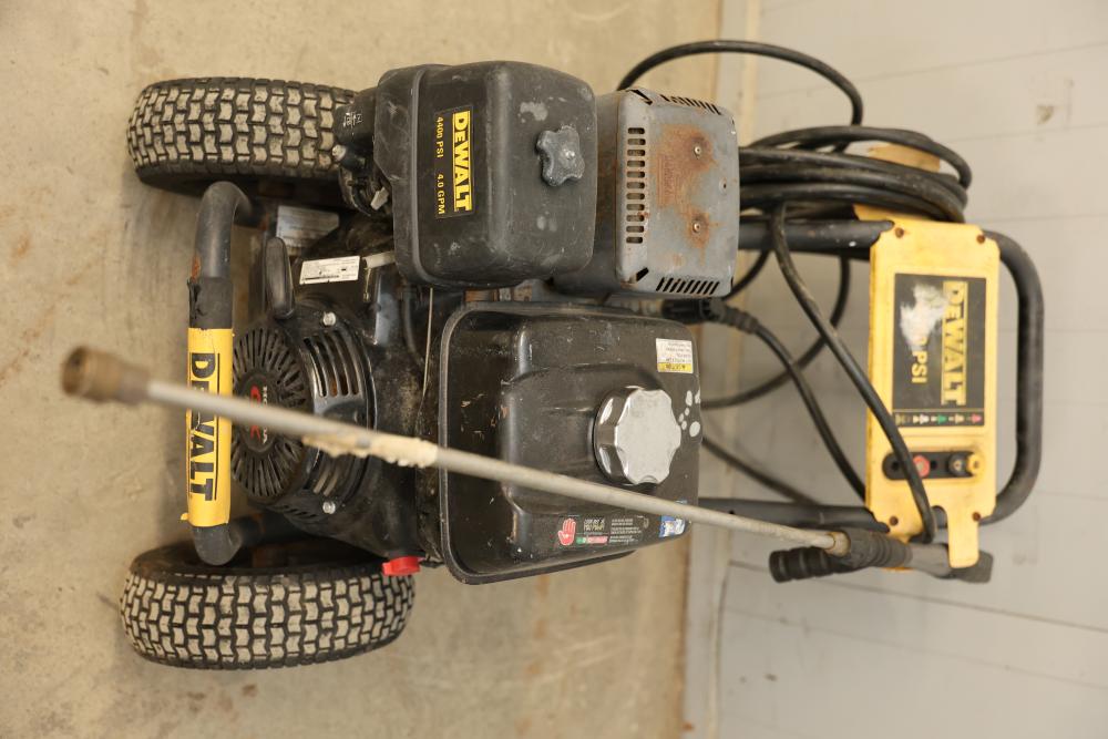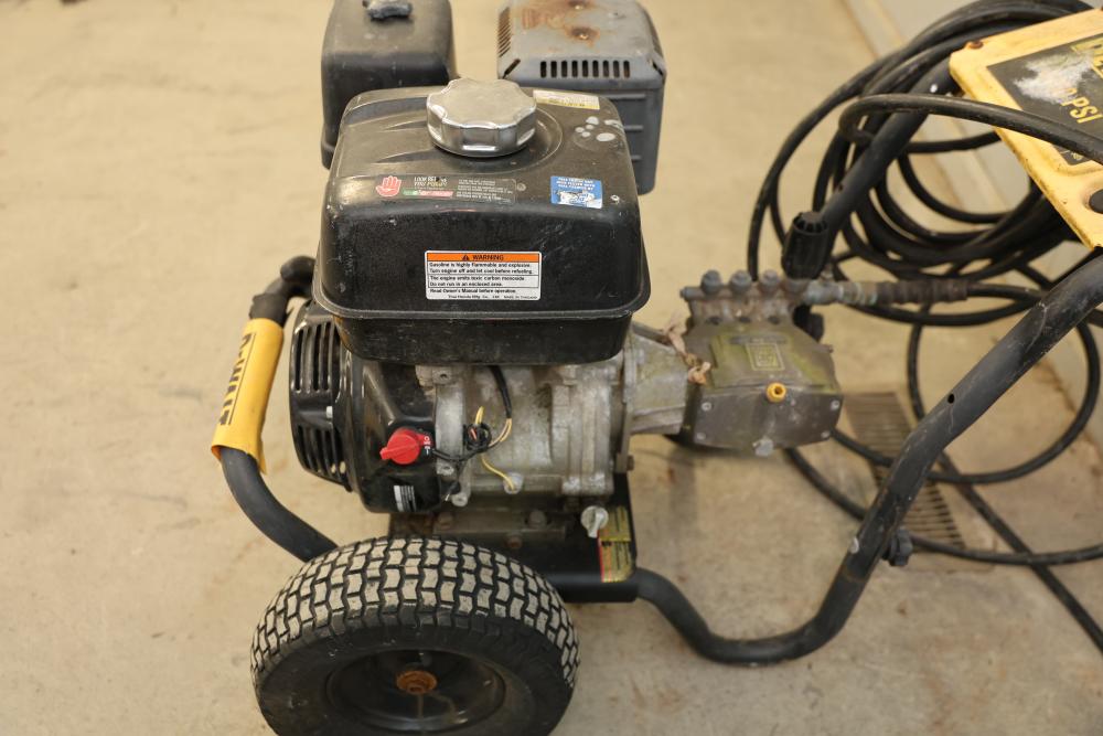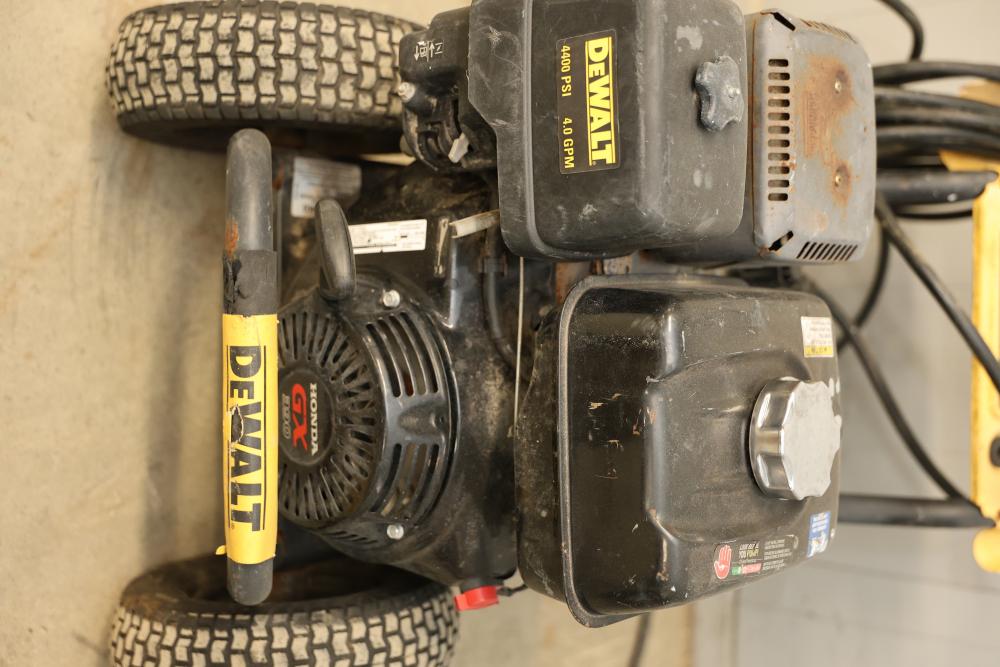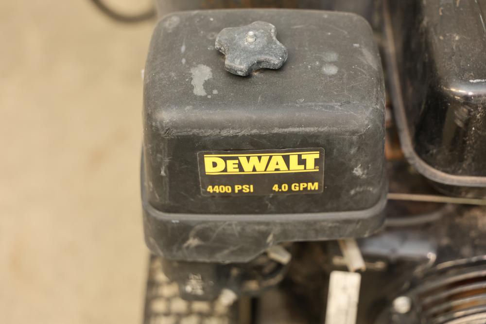 DeWalt DXPW4440 Gas Powered Cold Water Pressure Washer with Triplex Pump and GX390 Honda Engine. Features a 390 cc engine, 4400 PSI, and a 4.0 GPM capacity. Missing 25 degree and 40 degree nozzles. Pickup only.