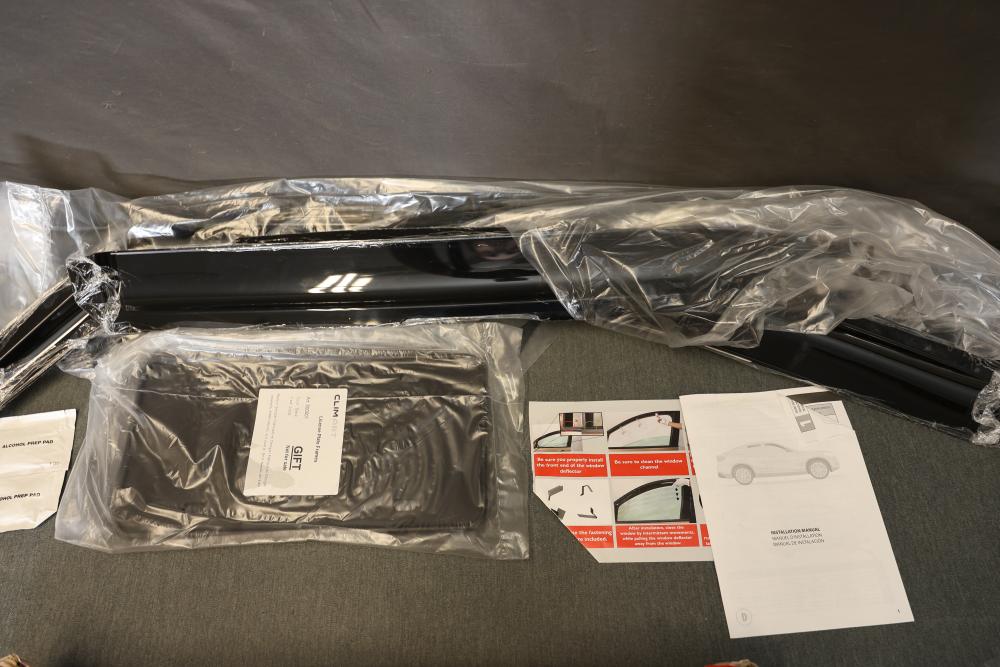 Car parts including Climart Side Window Deflectors, unbranded Sun Visors, A-Premium Window Regulator, black Car Seat Cover, Automobile Windshield Sunshade Cover, and Universal Cellphone Clip. Items may come in original packaging, appear unused, and include related instructions or manuals. Pickup only.