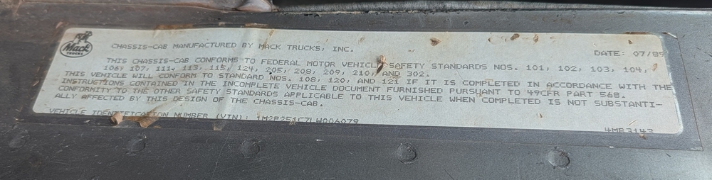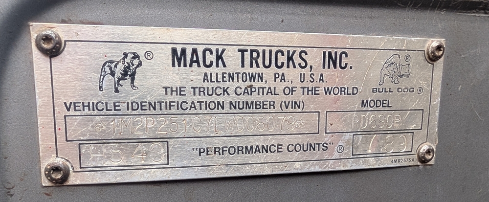 1990 Mack Water Truck; Model RD690P, Runs and Drives, Vin: 1M2P251C7LW006079, 151,920 Miles, (paperwork TBD).