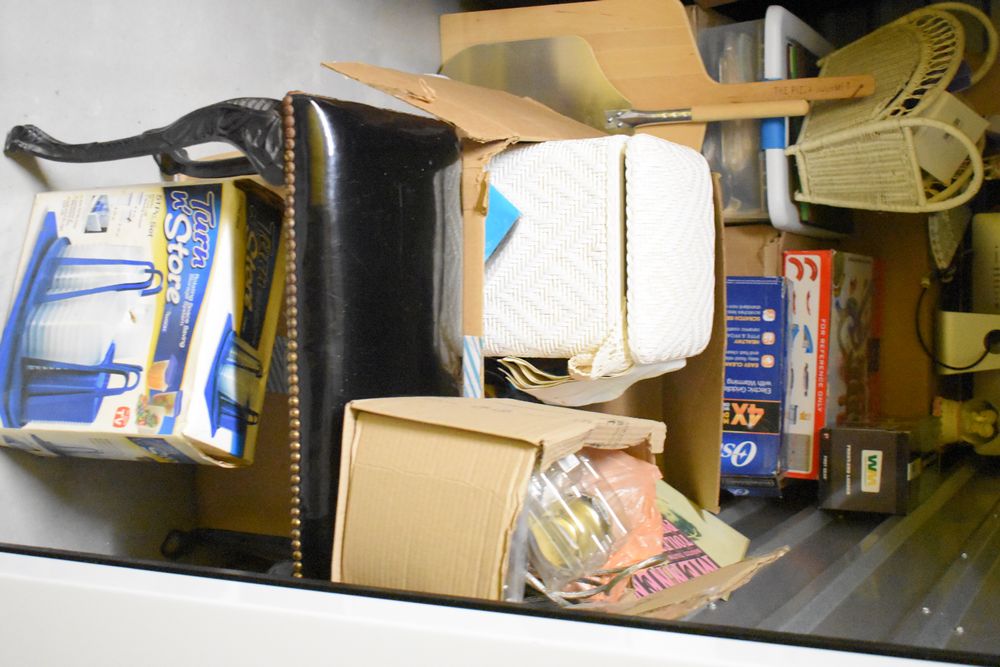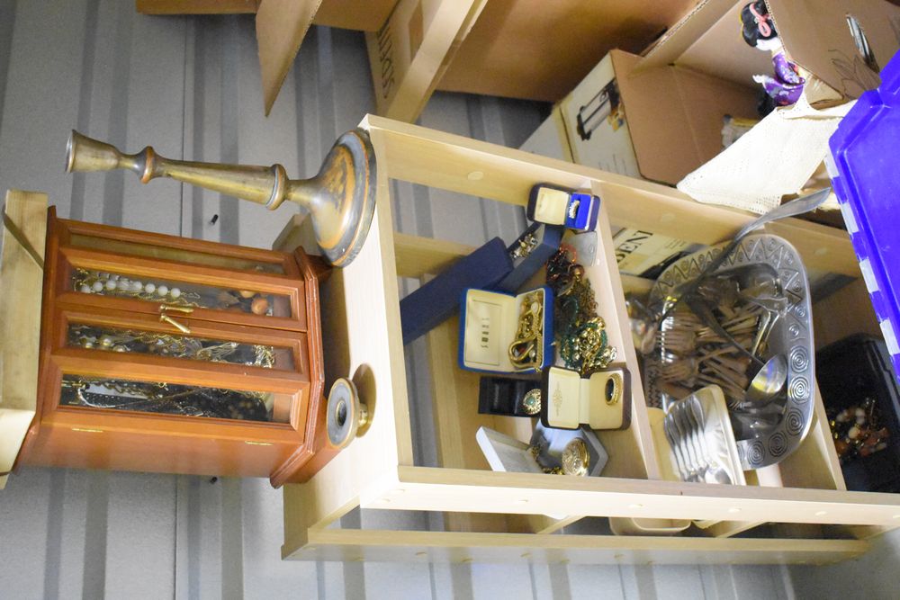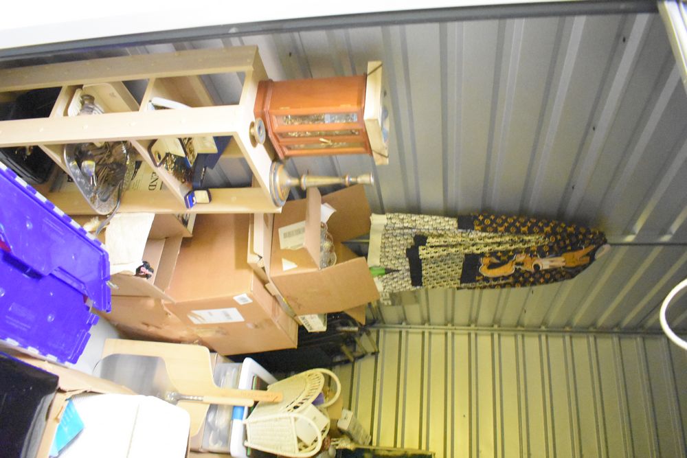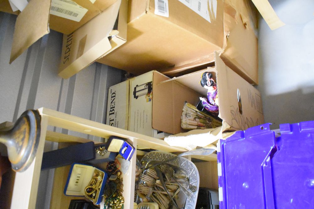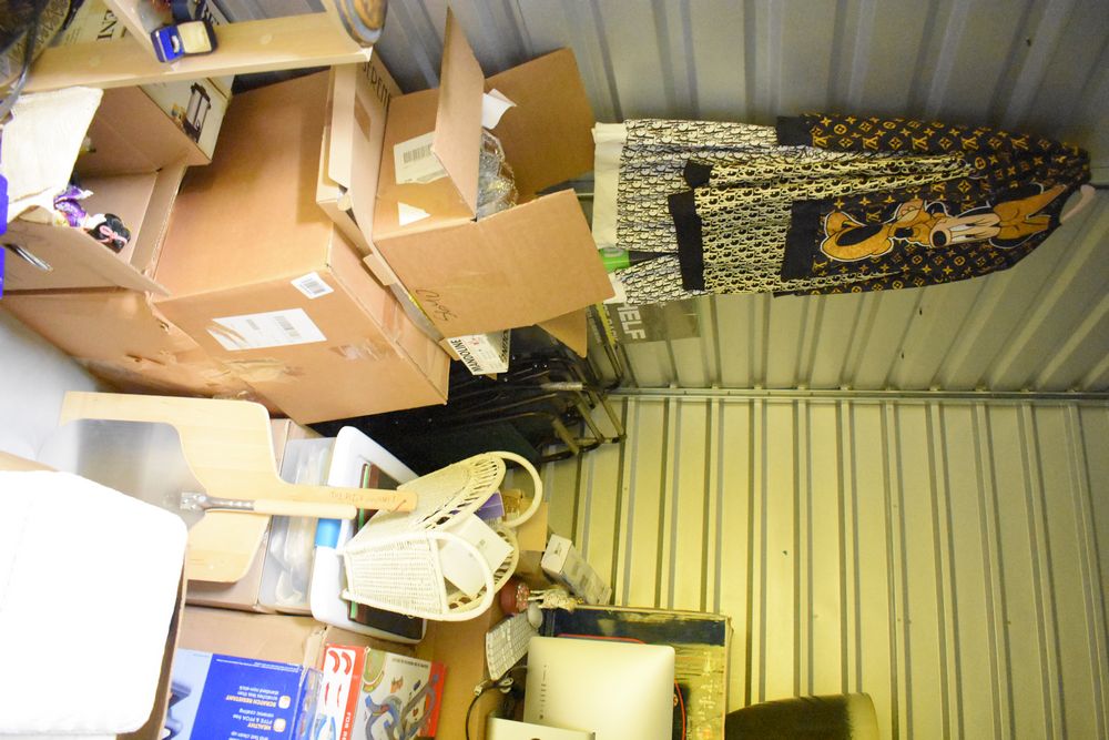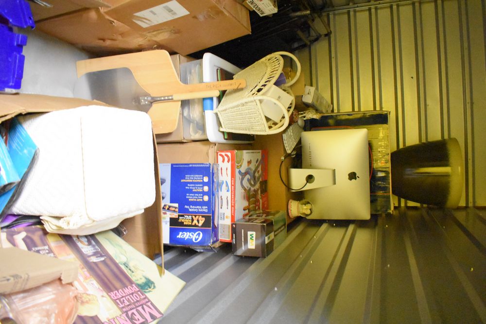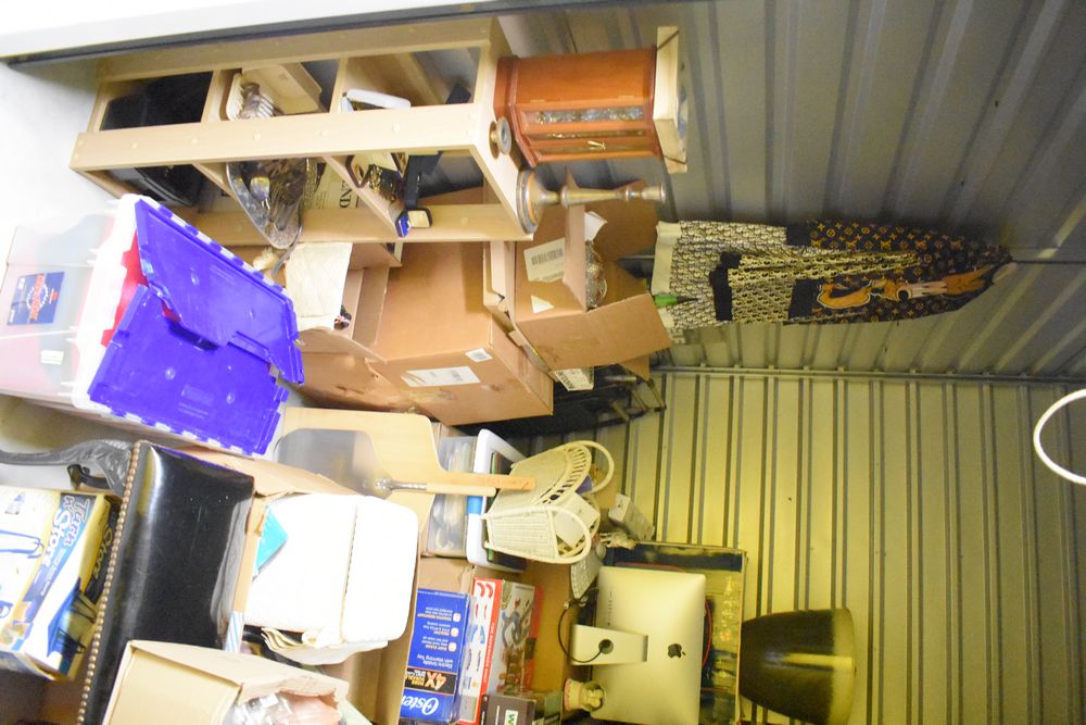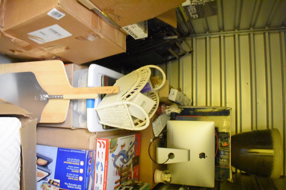 Contents of 10' x 5' storage unit being sold by the storage unit tenant. Contents include: Mixed Household & Decorative Storage Unit Contents, including Furniture, Electronics, Collectibles, & Kitchenware. wooden jewelry display cabinet (filled with assorted vintage costume jewelry), small shelving unit, upholstered bench/stool, plastic storage bins. Electronics: Apple iMac desktop computer, corning fiber optic cable, & various small electronic items. Collectibles: Large assortment of costume jewelry, collectible porcelain dolls, framed artwork, photo frames, decorative glassware, crystal bowl, candle holders, Christmas decorations, toys, etc. Clothing & Accessories: Vintage & new clothing, shoes & fashion accessories. Household Items: Mandoline slicer, assorted kitchenware, storage containers & miscellaneous home goods. The functionality of electric/electronic items are unknown/not tested. The authenticity of items have not been verified or guaranteed on any/all items. Items are located in Elmsford, NY. Buyers assume all risk & are responsible for complete removal of unit contents. The high bidder must clean/take all & leave nothing in the unit or on the storage facility property by Sunday, May 17 at 3PM. Access hours are Monday through Saturday. 9AM - 6PM & Sunday. 11AM - 4PM. Entrance gate automatically closes 15 minutes prior to closing hour. Any dumpster on the property is for use by the storage facility only, not by the public. Anything left in the unit after Sunday, May 17 at 5PM will be deemed abandoned & all cleanup costs will be the responsibility of the buyer. Any unit not completely emptied by the stated pickup deadline, the high bidder will incur a disposal fee of at least $150. Due to security reasons the storage facility & room numbers will only be given to winning bidders. There is no physical inspection available for this auction. The combination to the lock on the unit & any access code will be supplied after the invoice has been paid.