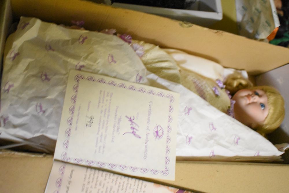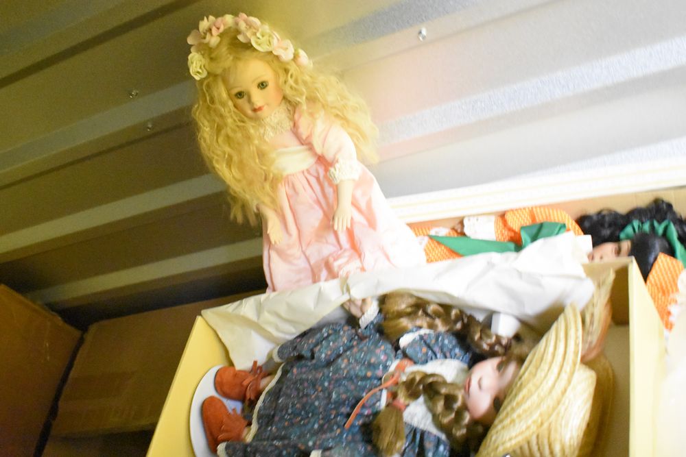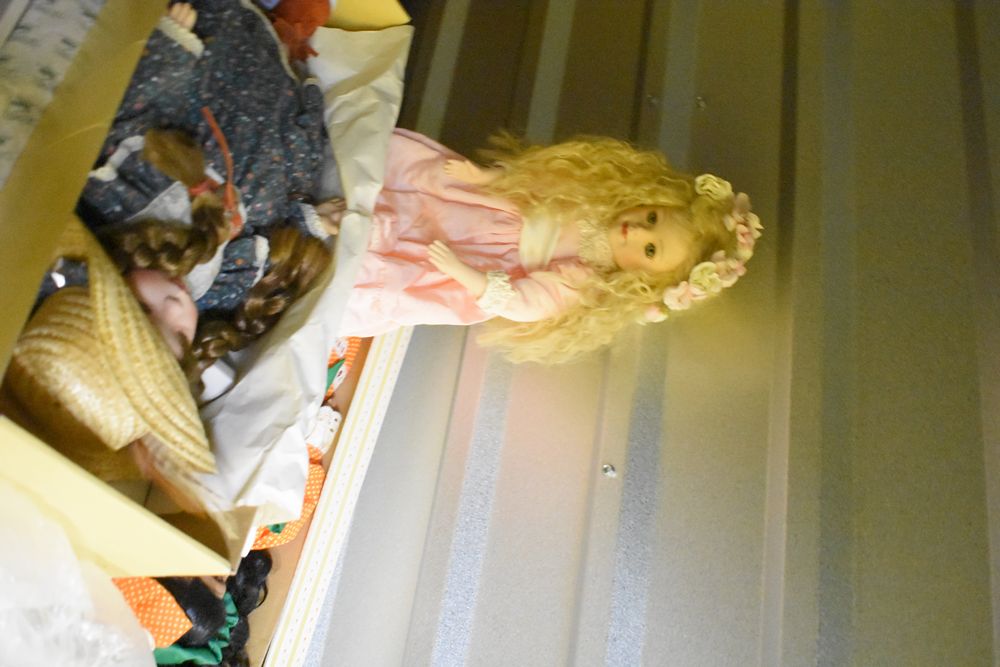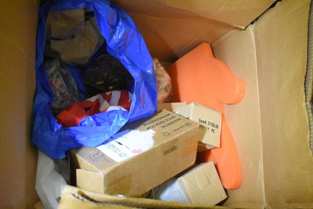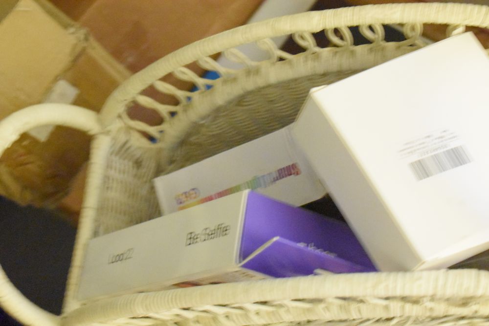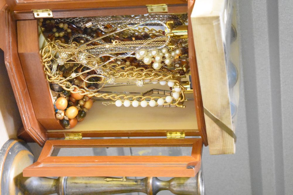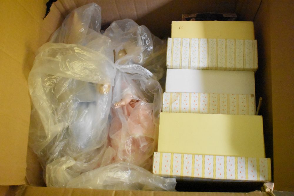 Contents of 10' x 5' storage unit being sold by the storage unit tenant. Contents include: Mixed Household & Decorative Storage Unit Contents, including Furniture, Electronics, Collectibles, & Kitchenware. wooden jewelry display cabinet (filled with assorted vintage costume jewelry), small shelving unit, upholstered bench/stool, plastic storage bins. Electronics: Apple iMac desktop computer, corning fiber optic cable, & various small electronic items. Collectibles: Large assortment of costume jewelry, collectible porcelain dolls, framed artwork, photo frames, decorative glassware, crystal bowl, candle holders, Christmas decorations, toys, etc. Clothing & Accessories: Vintage & new clothing, shoes & fashion accessories. Household Items: Mandoline slicer, assorted kitchenware, storage containers & miscellaneous home goods. The functionality of electric/electronic items are unknown/not tested. The authenticity of items have not been verified or guaranteed on any/all items. Items are located in Elmsford, NY.