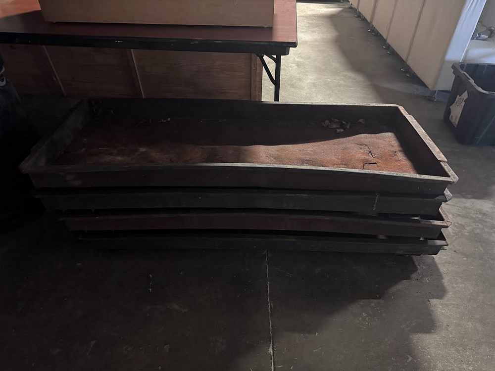 Items include Giffy Barrels used as counterweights; large quantities of commercial dish racks; portable folding server stands; inflatable event items; string light support poles; assorted catering and event service equipment; banquet tables and stacking chairs including large quantity chair lots; shelving, storage, and miscellaneous rental inventory; along with additional fixtures, materials, and equipment from a large-scale rental inventory liquidation. Items are located in Fishkill, NY.