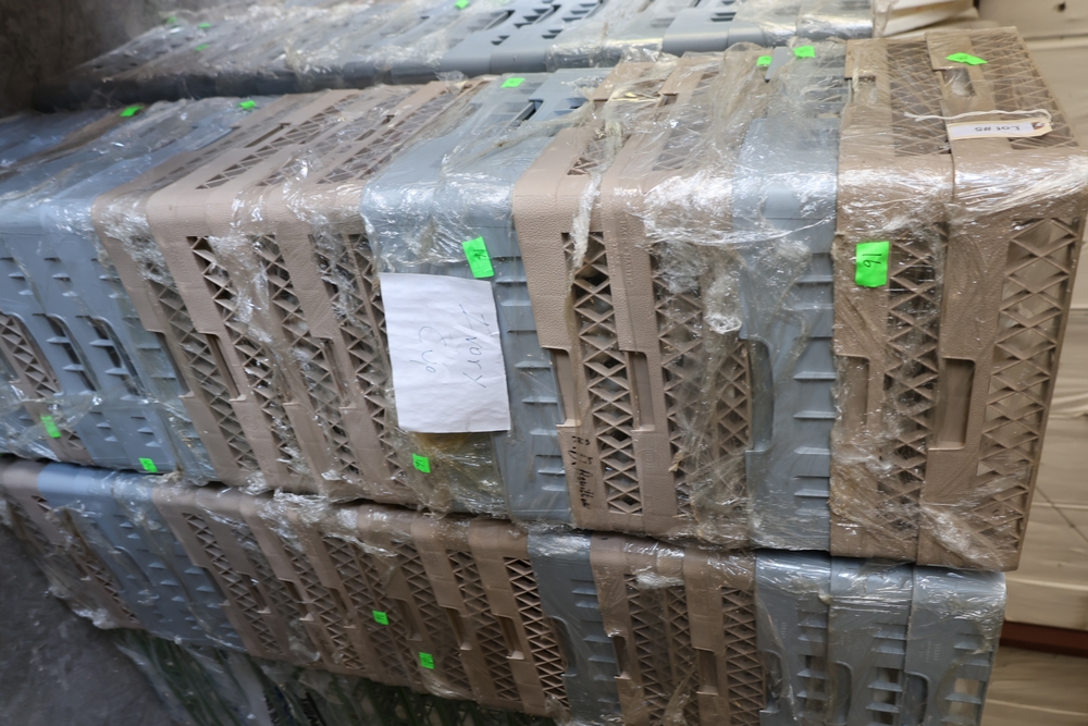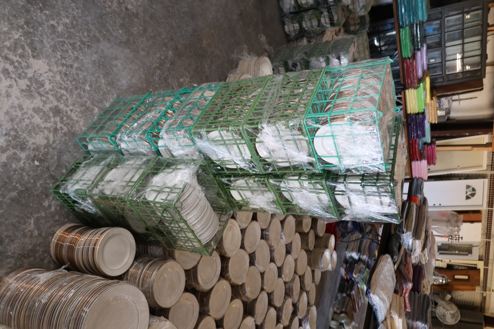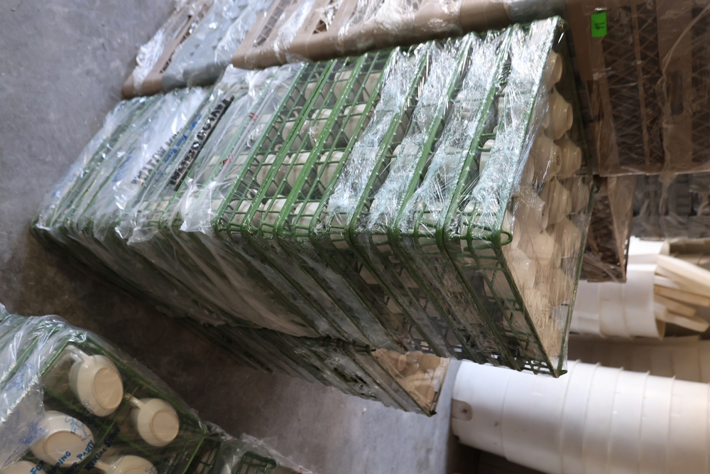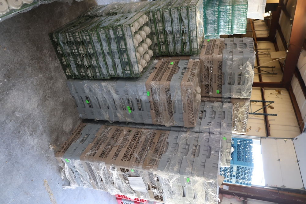 Items include Giffy Barrels used as counterweights; large quantities of commercial dish racks; portable folding server stands; inflatable event items; string light support poles; assorted catering and event service equipment; banquet tables and stacking chairs including large quantity chair lots; shelving, storage, and miscellaneous rental inventory; along with additional fixtures, materials, and equipment from a large-scale rental inventory liquidation. Items are located in Fishkill, NY.