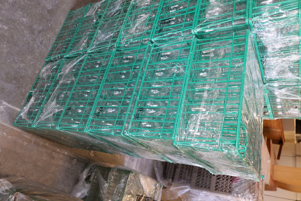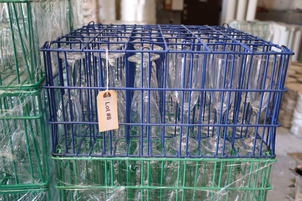Items include Giffy Barrels used as counterweights; large quantities of commercial dish racks; portable folding server stands; inflatable event items; string light support poles; assorted catering and event service equipment; banquet tables and stacking chairs including large quantity chair lots; shelving, storage, and miscellaneous rental inventory; along with additional fixtures, materials, and equipment from a large-scale rental inventory liquidation. Items are located in Fishkill, NY.