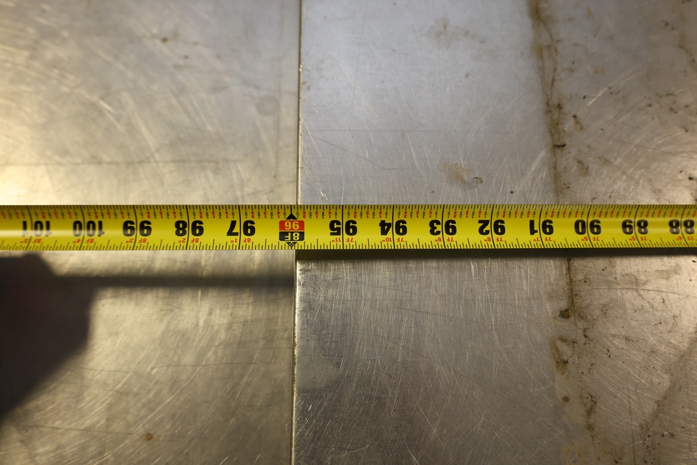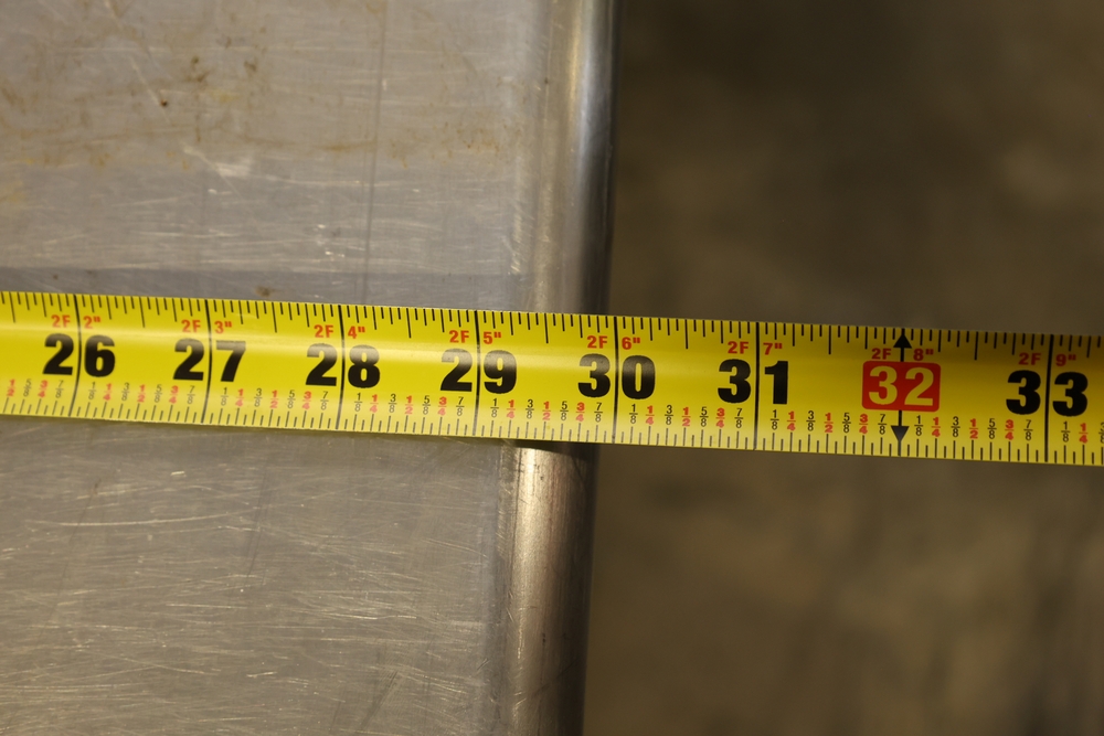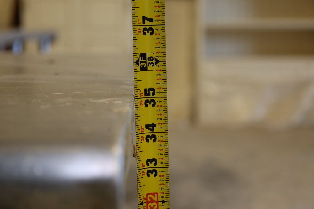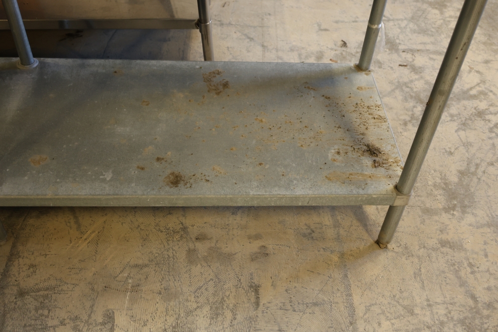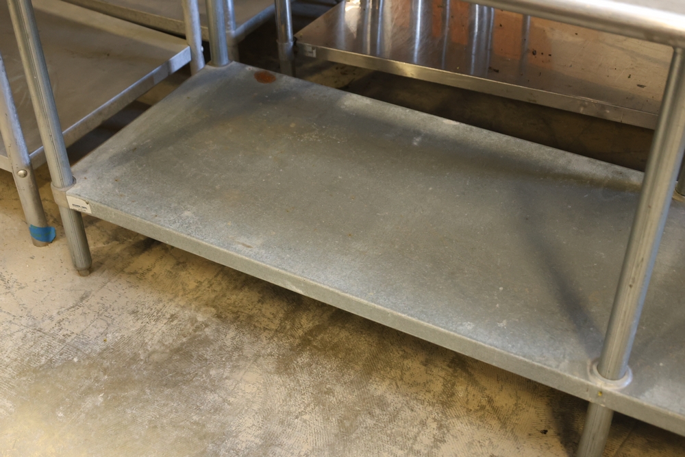 Advance Tabco stainless steel work table with lower shelf, approximately 96 in wide x 30 in deep x 35 in high.