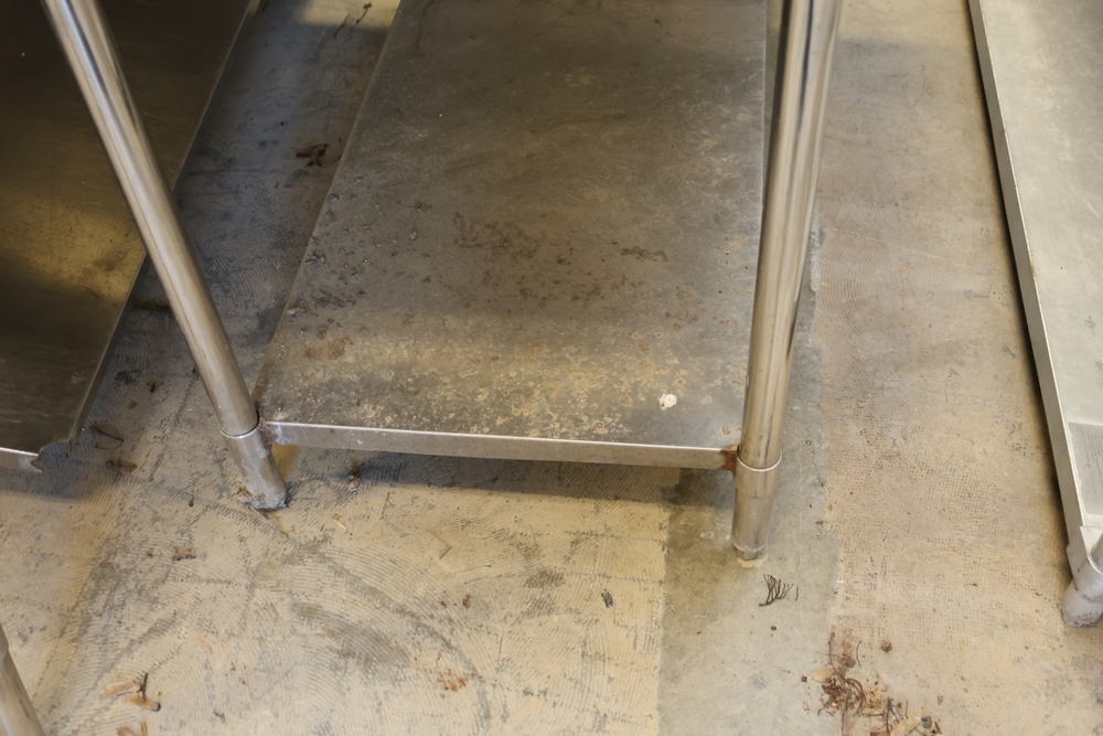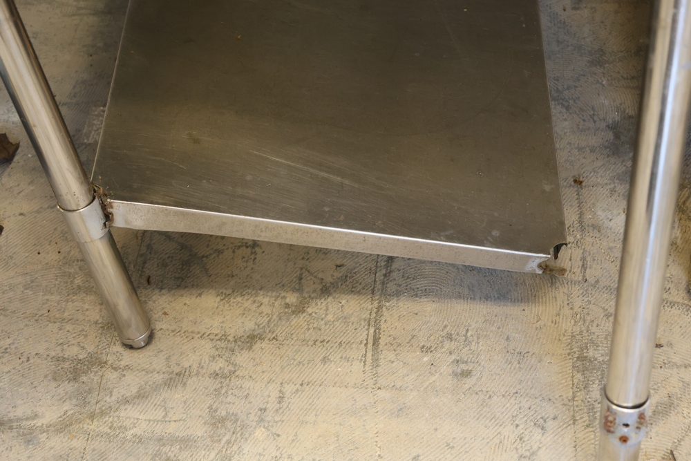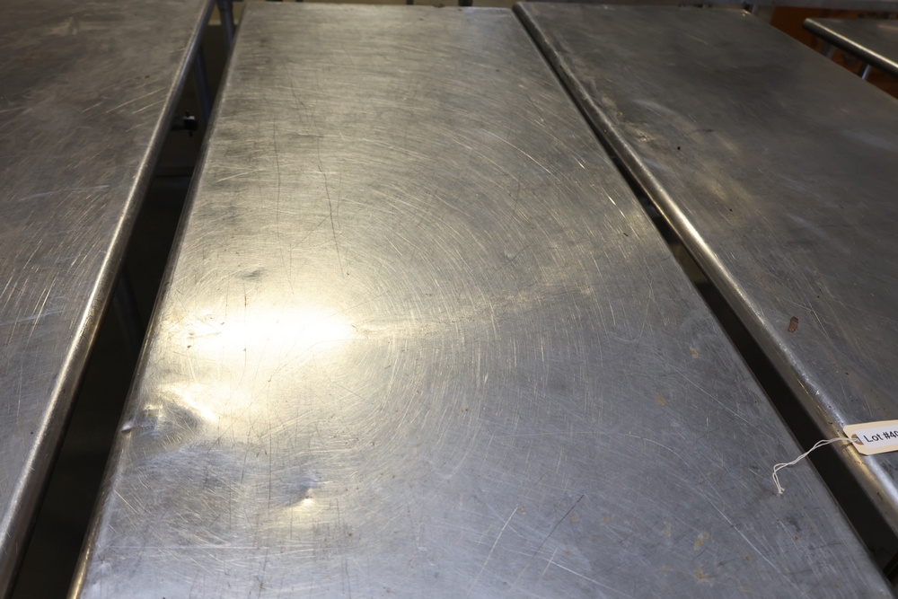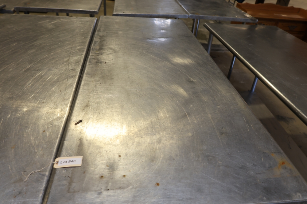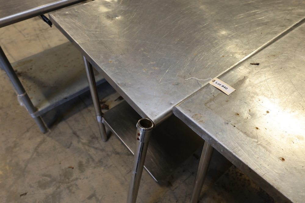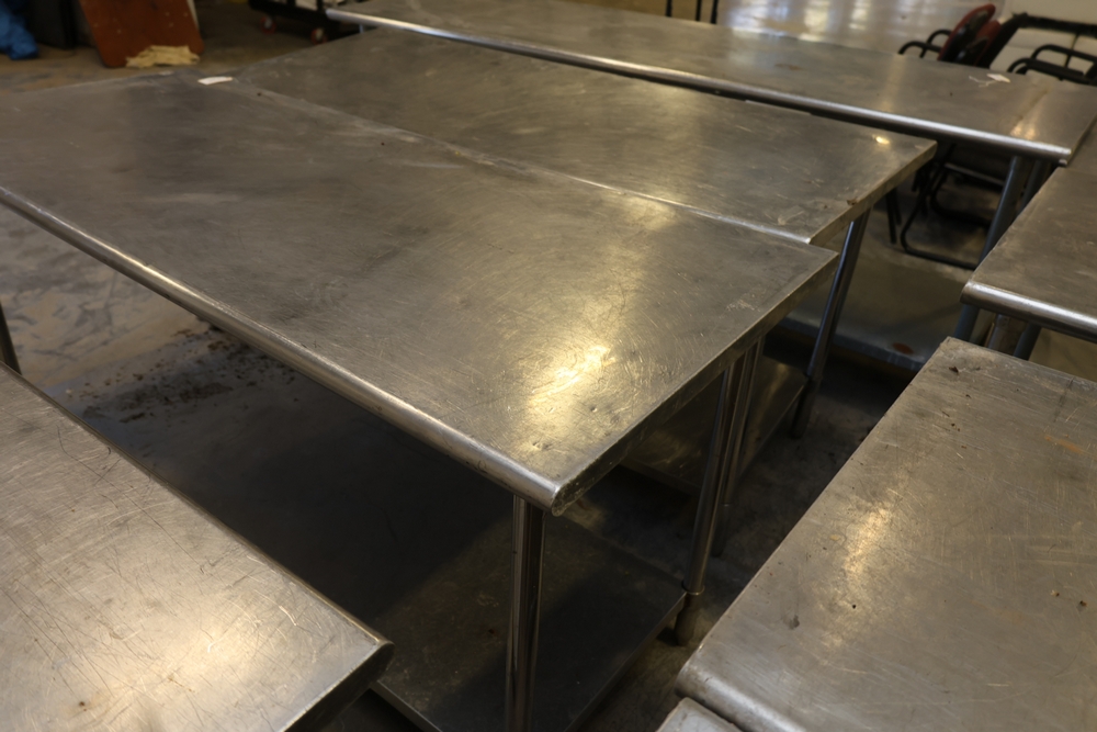 Two Stainless steel work tables with lower shelf, approximately 72 in wide x 30 in deep x 34 in high.