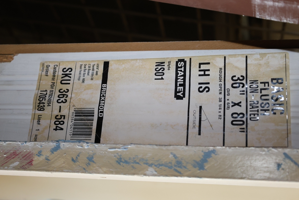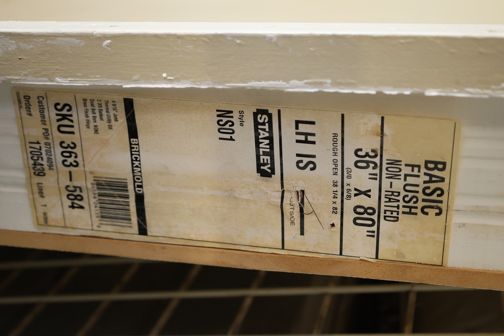 Stanley basic flush non-rated entry door with frame, 36 in x 80 in, left-hand inswing, style NS01, includes brickmould.