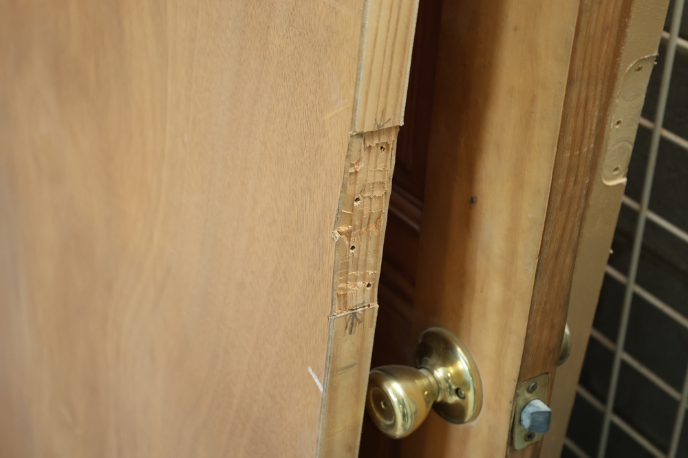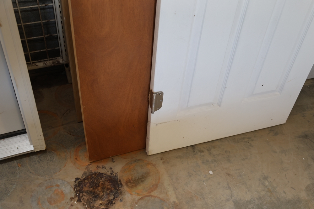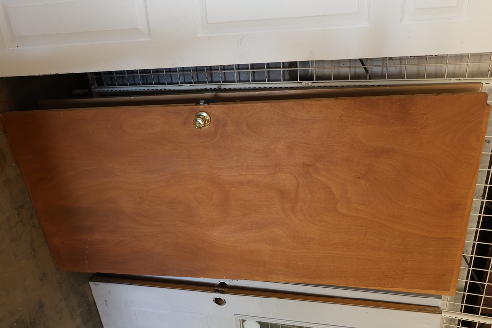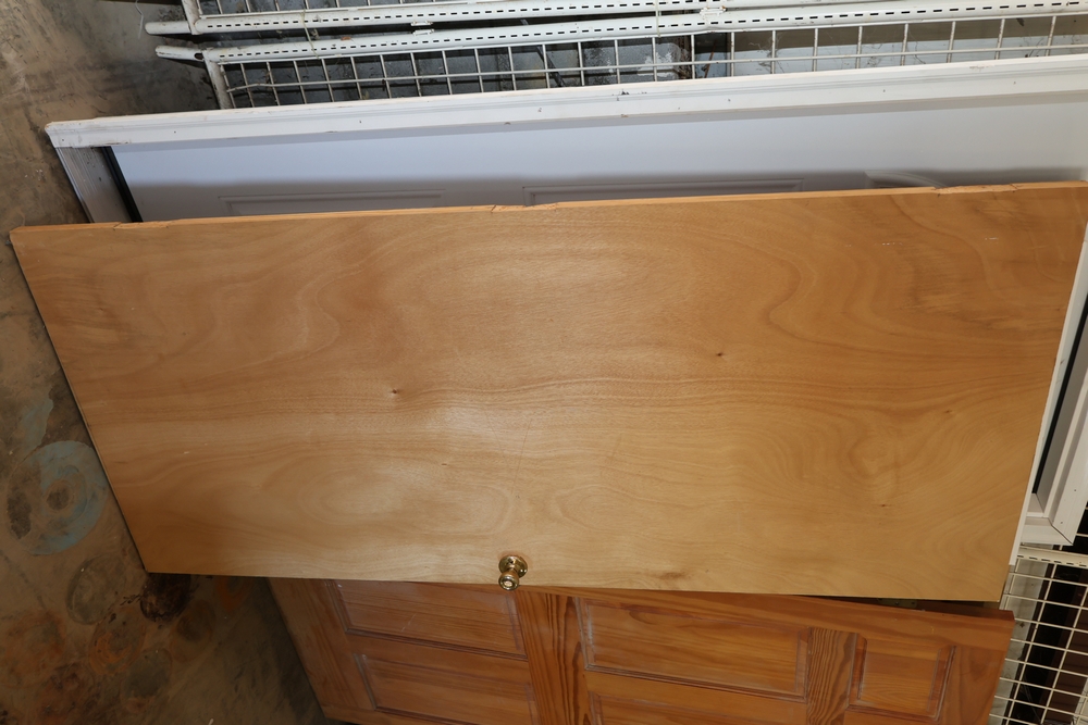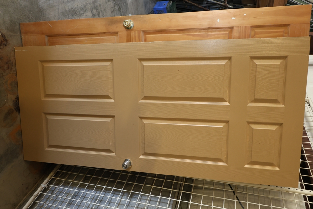 Assorted interior doors including six-panel molded doors and wood veneer slab doors.