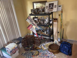Sporting with Raleigh Bike. Featuring: 60" bow; Spaulding Fast Flight gold clubs; Raleigh bike (loc in basement); other related items; opt shelving unit.