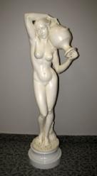 40"T classical nude female statue on 6"T marble pedestal. Heavy statue appears to be composed of man made materials.