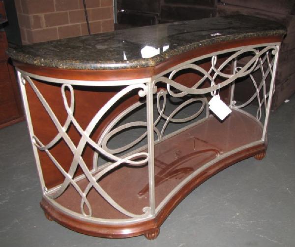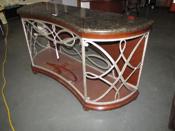 Black granite top console table with wood & metal frame, 35.5"Tx66"Wx21.5"D. Other items appearing photos not included.