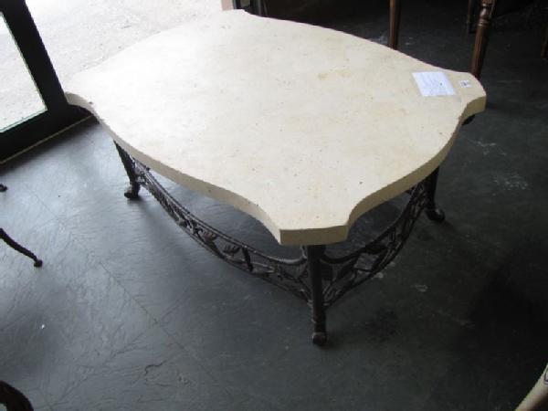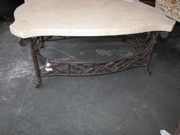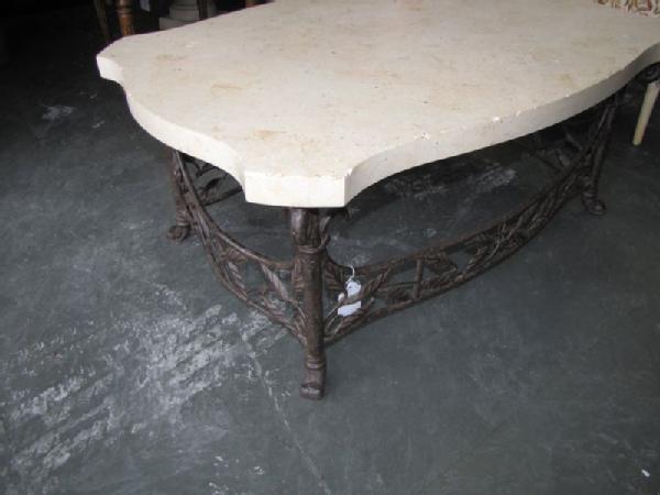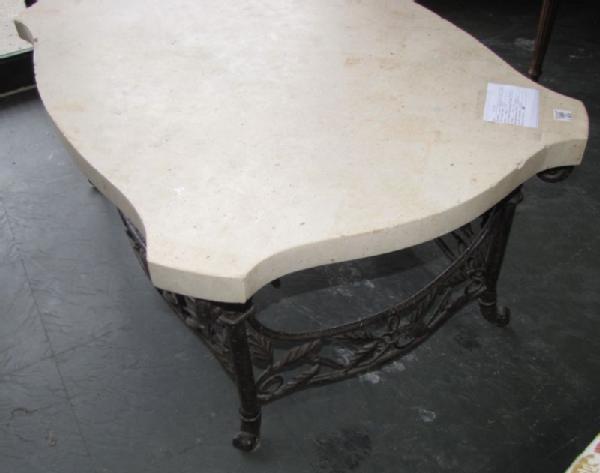 Limestone top cocktail table with iron base 16"Tx28"W40"D. Other items appearing photos not included.