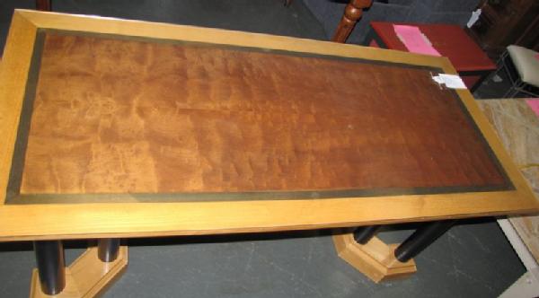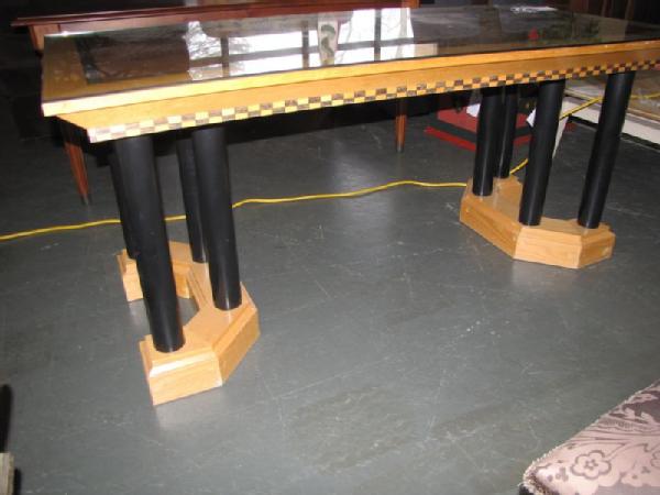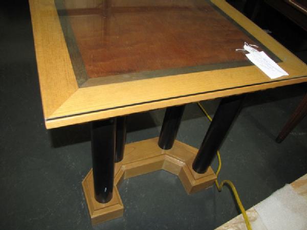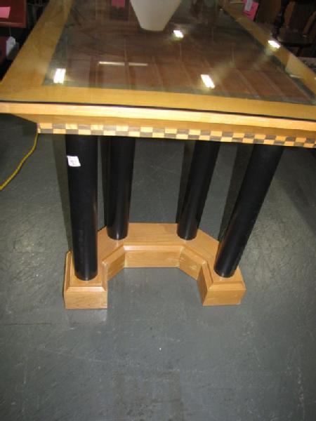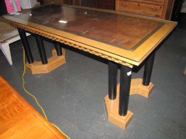 Contemporary glass top table, 30"Tx66"Wx30"D. Other items appearing photos not included.