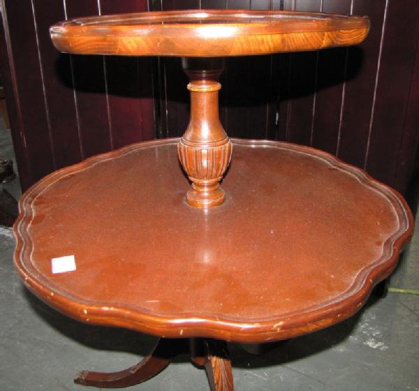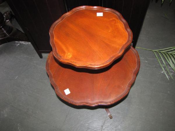 Two tiered round table with pie crust edge, 30"Tx24"W. Other items appearing photos not included.