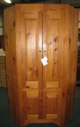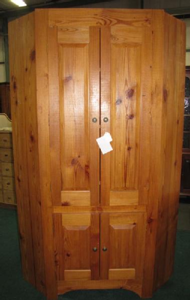 Pine corner cabinet with adjustable shelves, 87"Tx56"Wx40"D. Other items appearing photos not included.